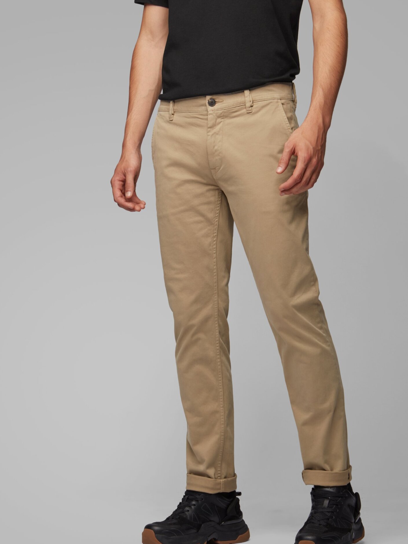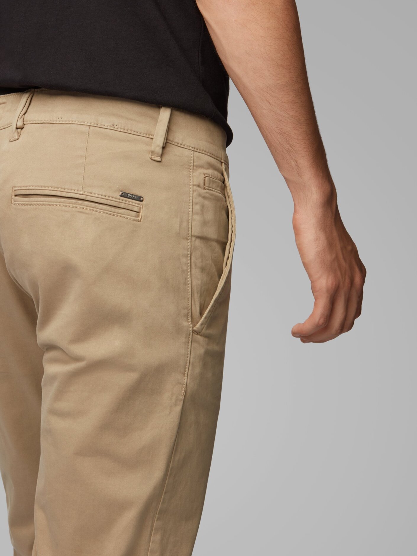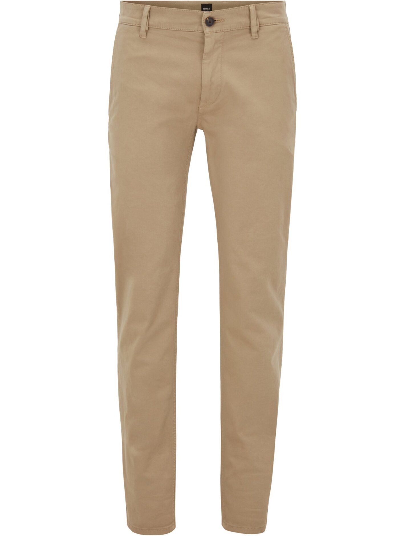 Almindelige chinos i slim fit fra boss. Disse chinos er lavet i strækbomuld med et satinlignende præg og har sildebenstape på den indvendige linning. De dobbelte løkker ved linningen er designet til at rumme bælter i forskellige bredder.