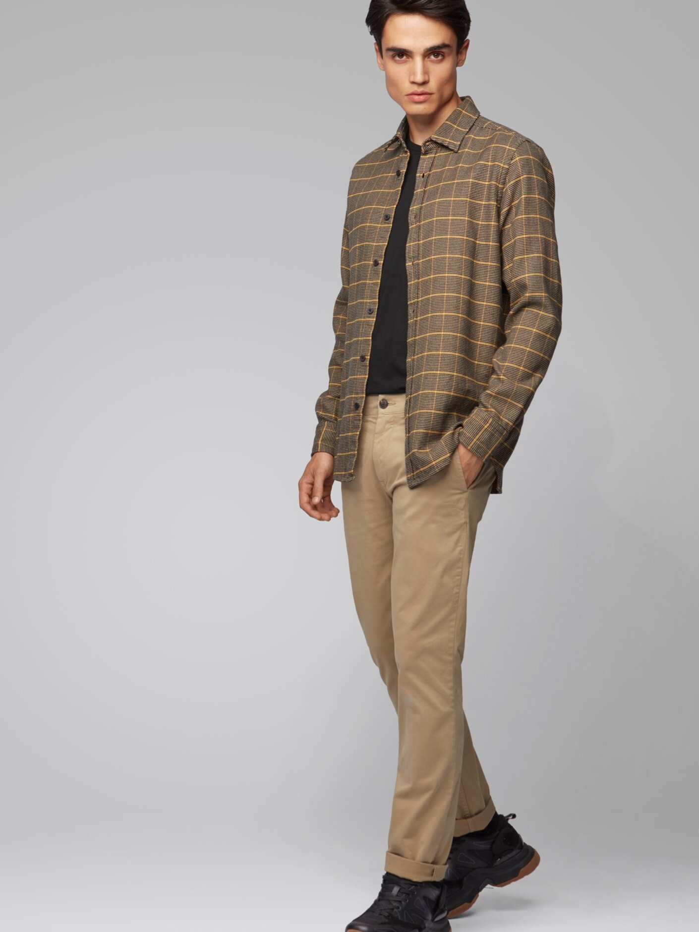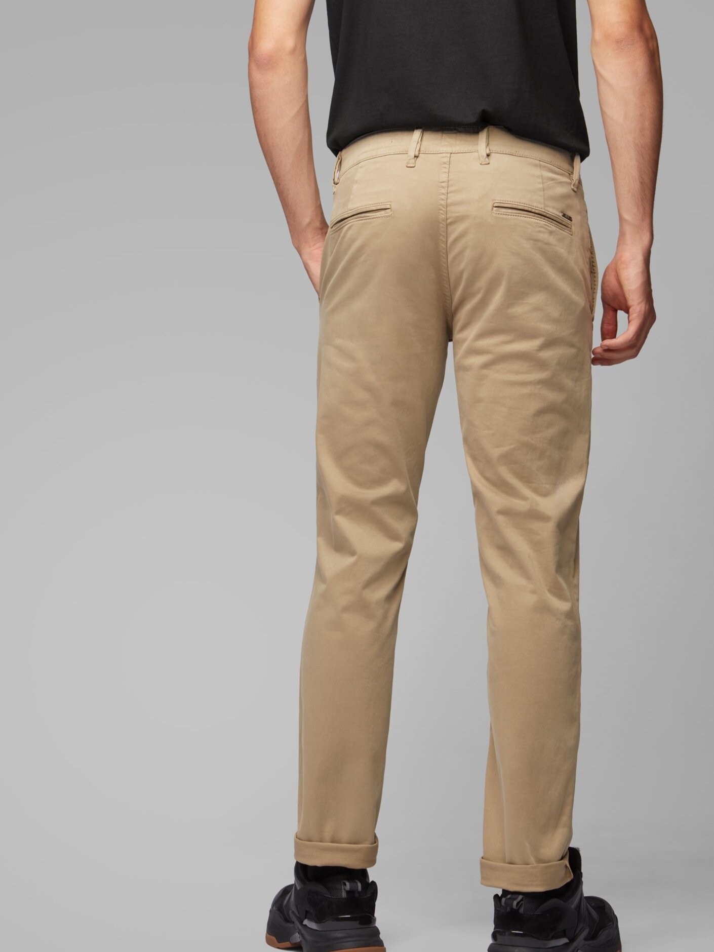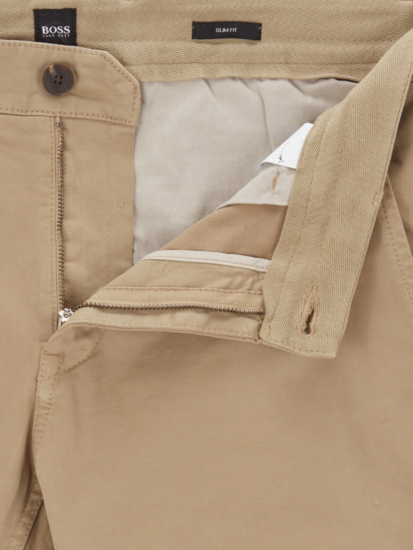 Almindelige chinos i slim fit fra boss. Disse chinos er lavet i strækbomuld med et satinlignende præg og har sildebenstape på den indvendige linning. De dobbelte løkker ved linningen er designet til at rumme bælter i forskellige bredder.