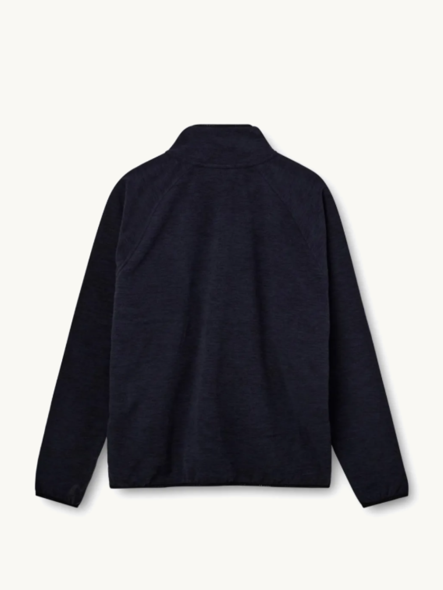 Afslappet pasform med lange ærmer, høj krave og gennemgående lynlås.