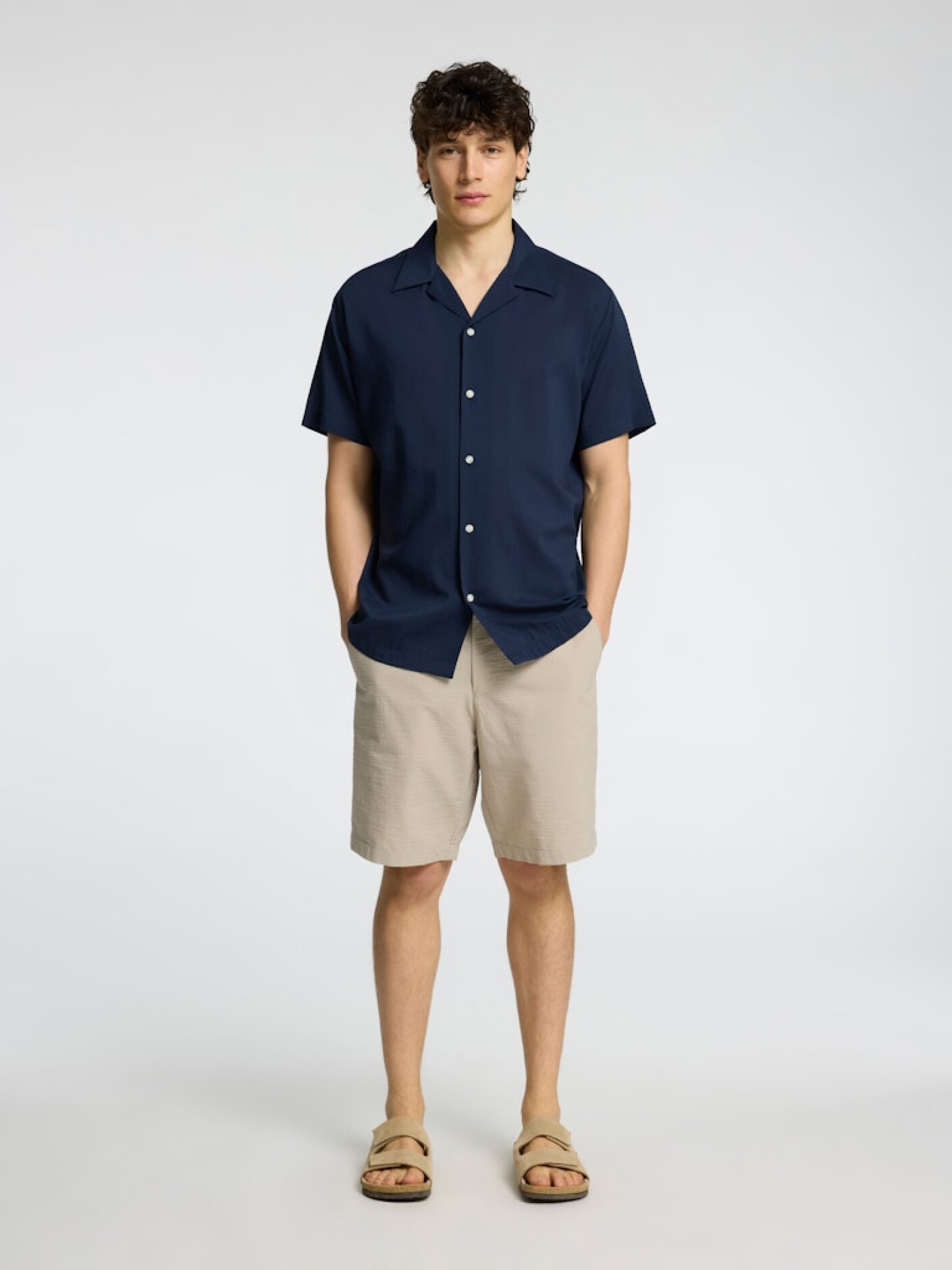 seersucker-kvalitet med en behagelig struktur. De har en afslappet regular fit,