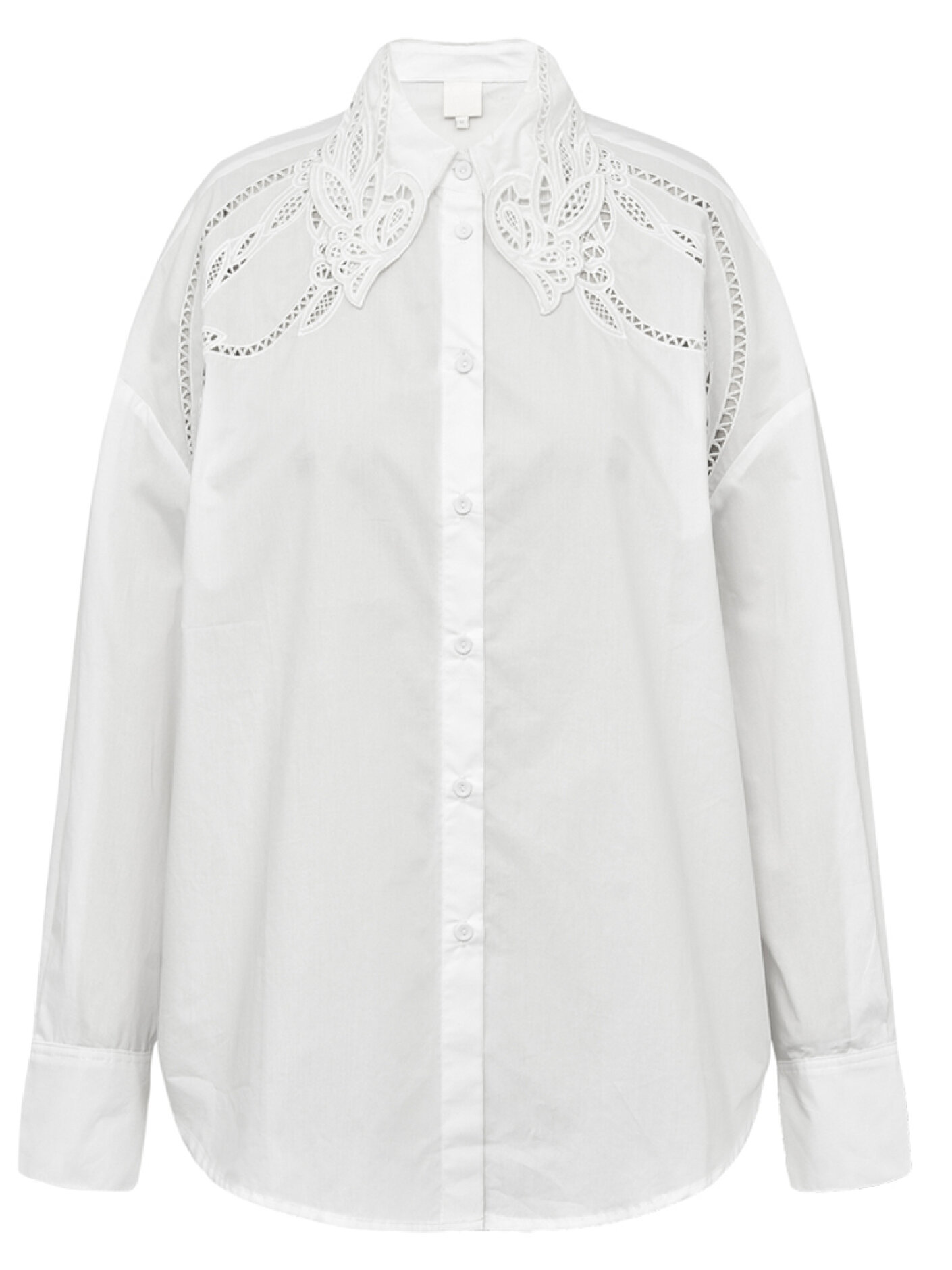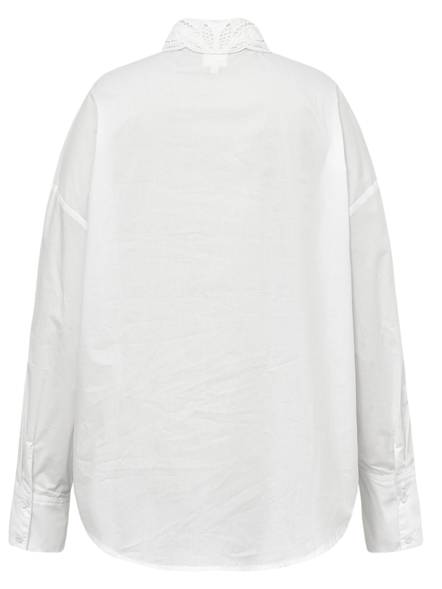 delikate detaljer tilfører skjorten et feminint og elegant udtryk, der gør den