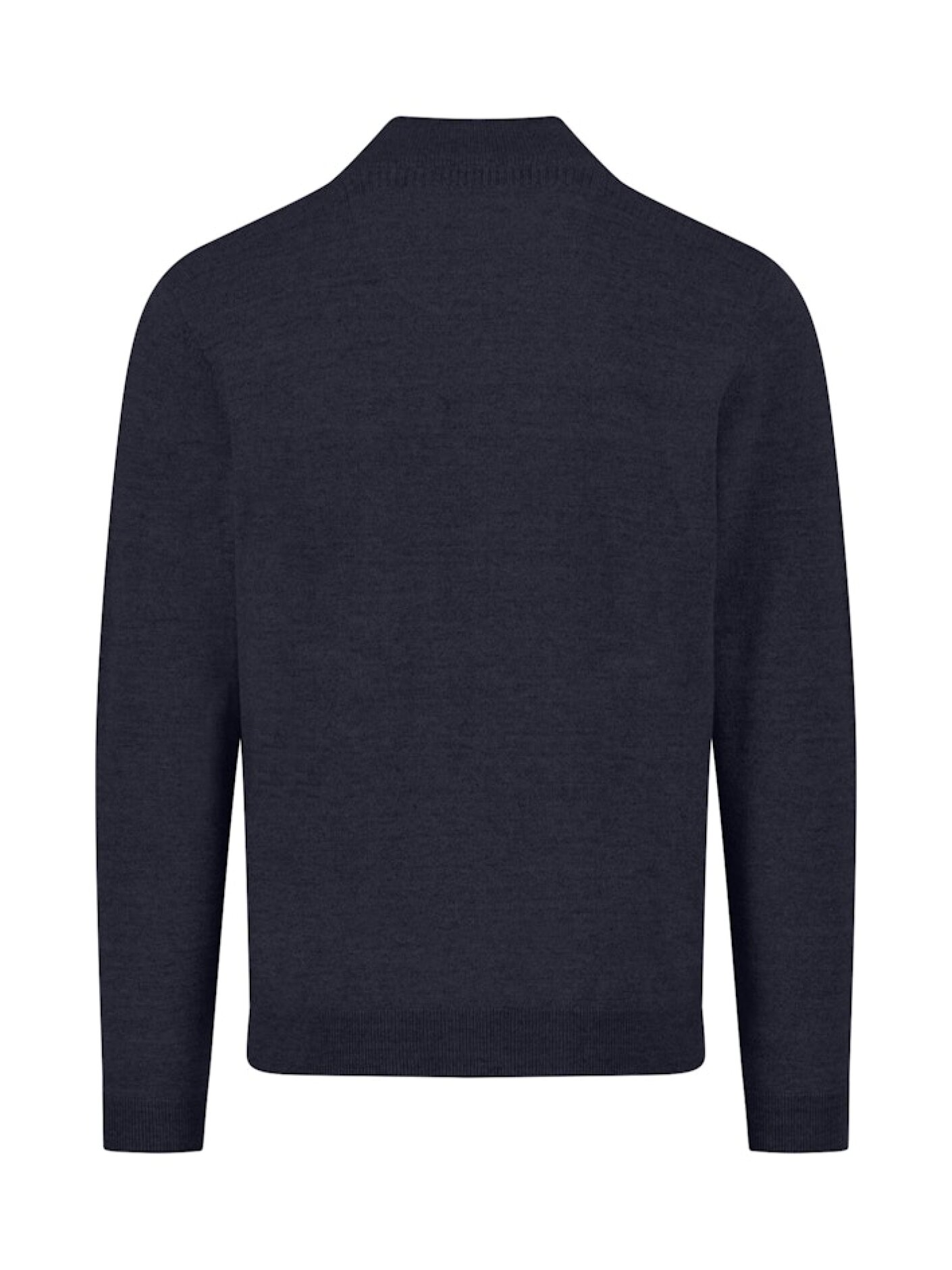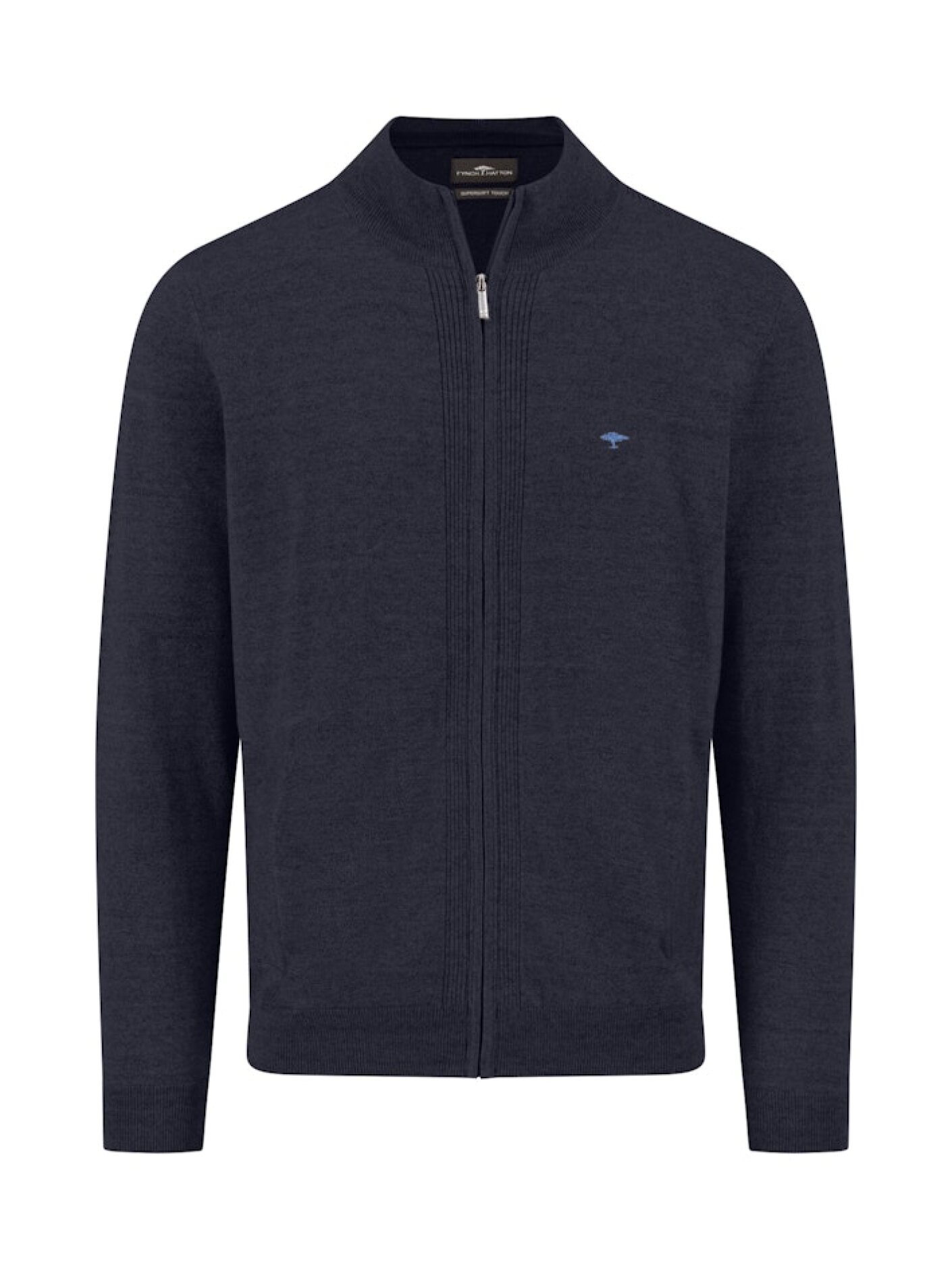En klassisk herrecardigan med stand-up krave og lynlås,