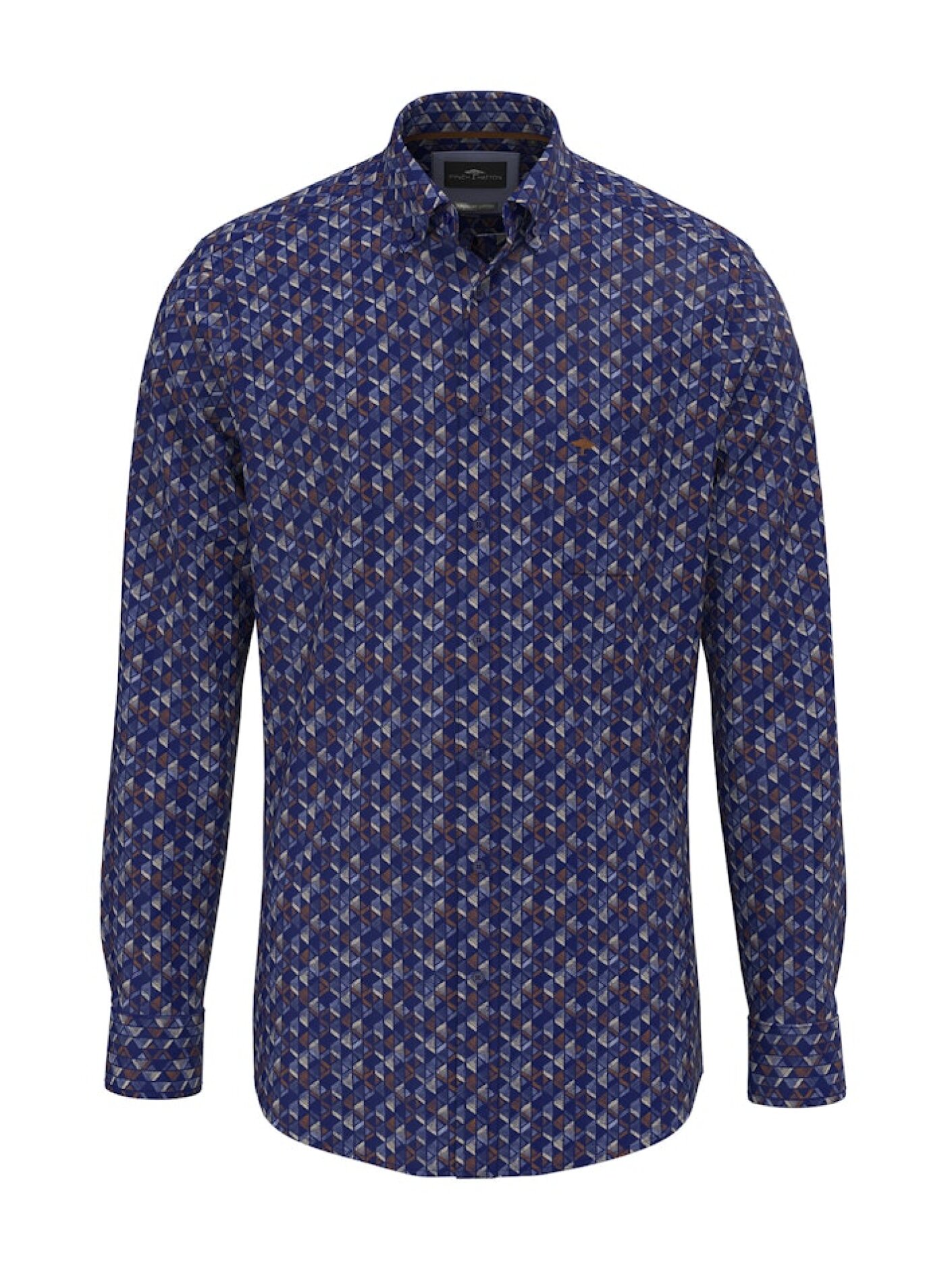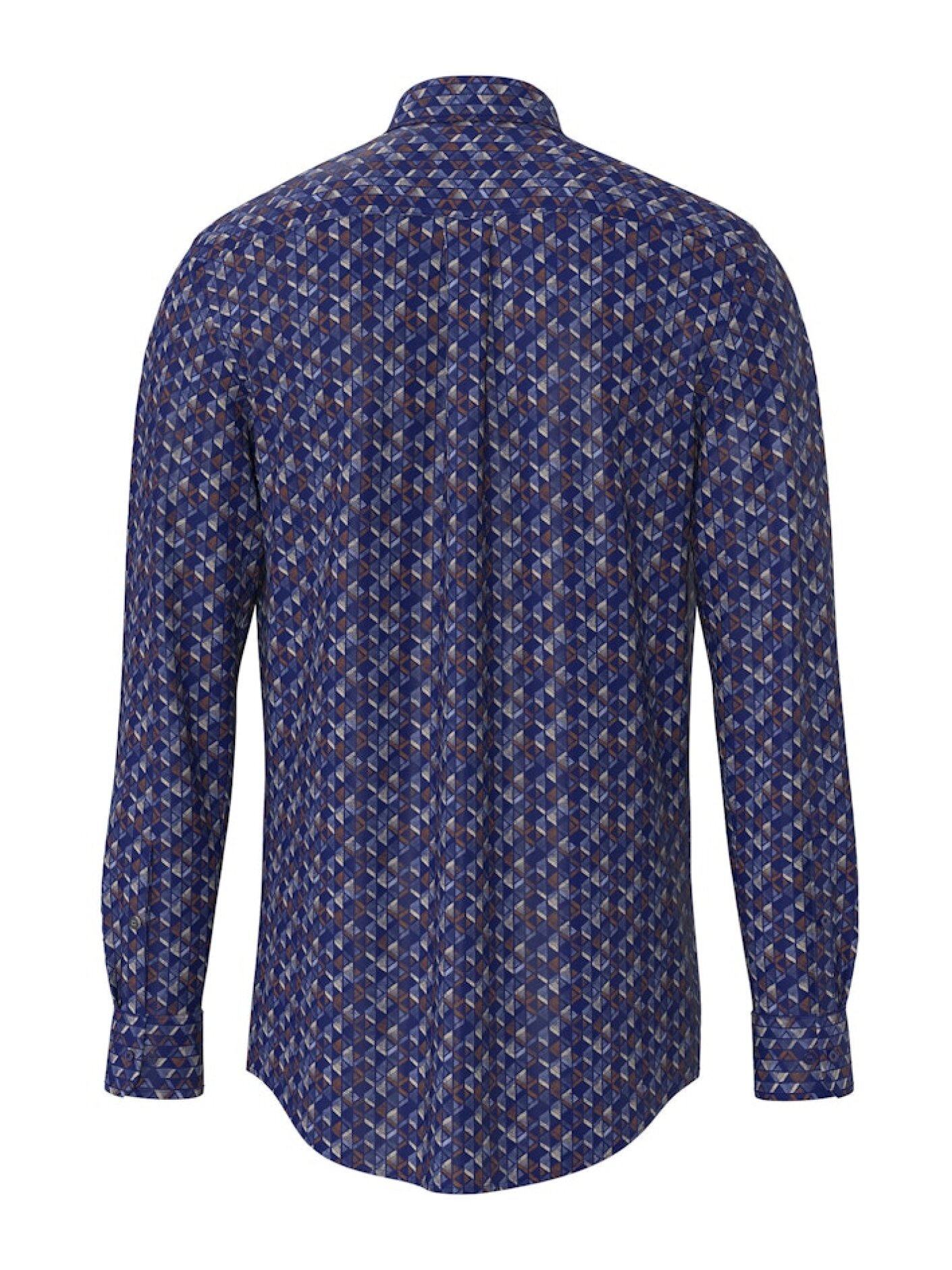 Fynch Hatton Dark Graphic Print B.D. Skjorte – Misty Blue