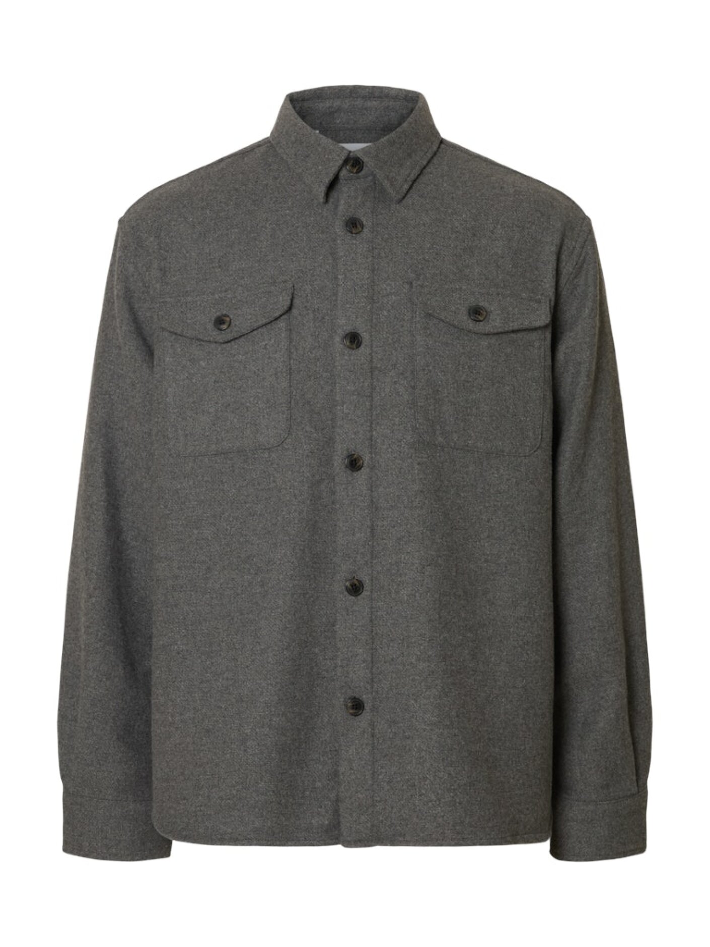 SLHRLXPABLO Wool Blend Overshirt – Dark Grey Melange