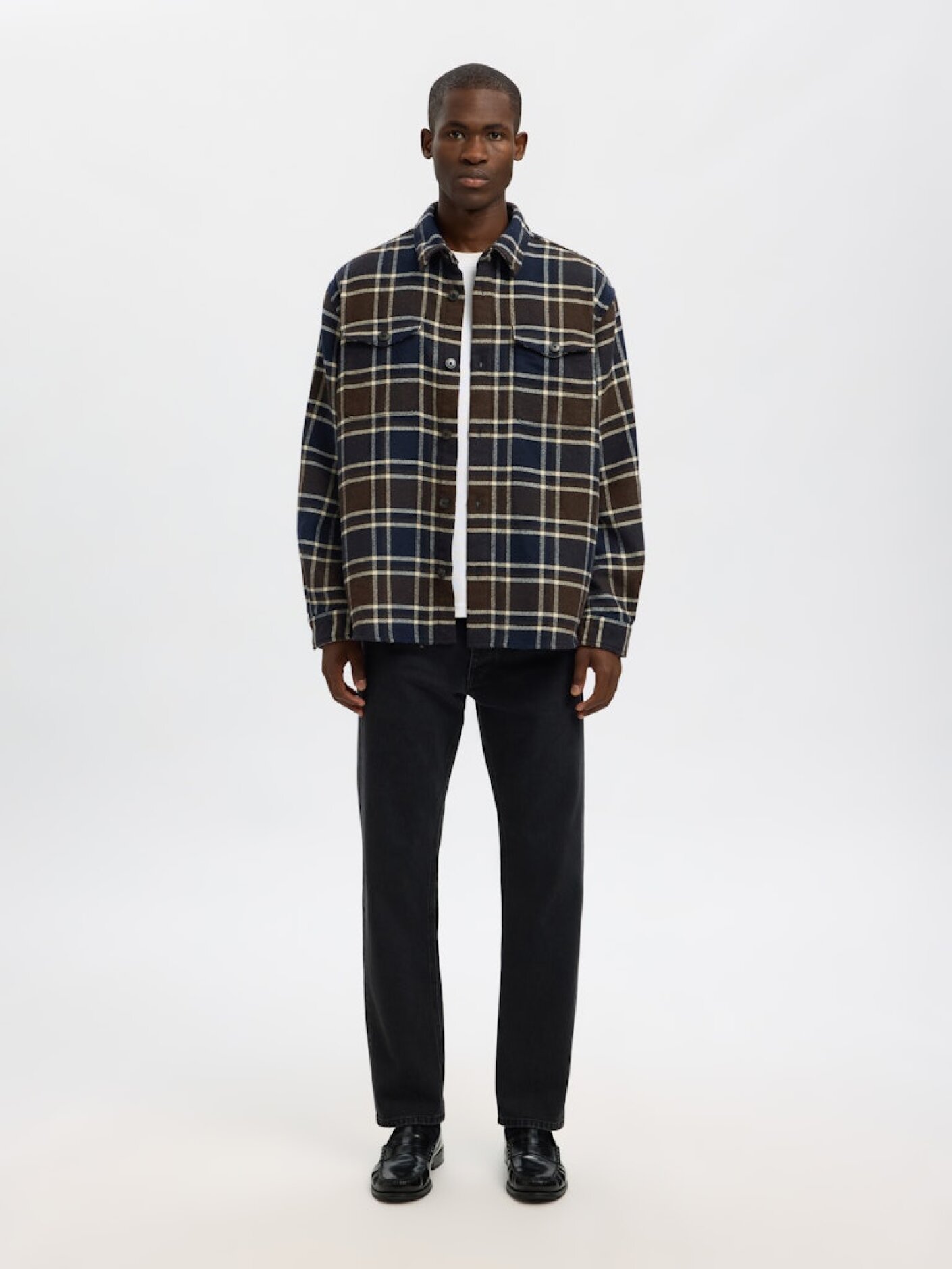 Brug overshirten sammen med mørke chinos eller jeans for et
