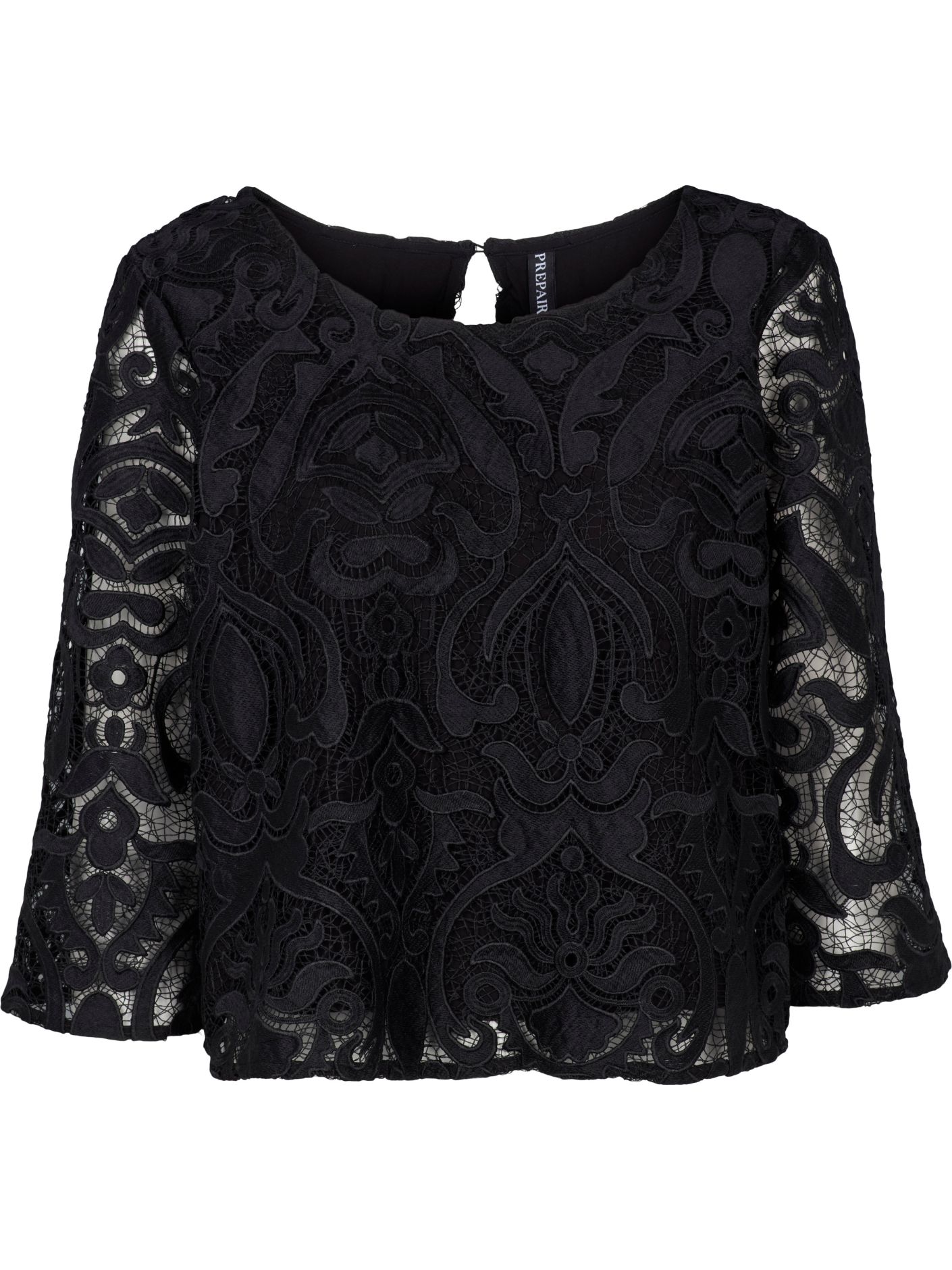 Madeleine Blouse fra PREPAIR er en smuk og elegant blondebluse med rund hals og