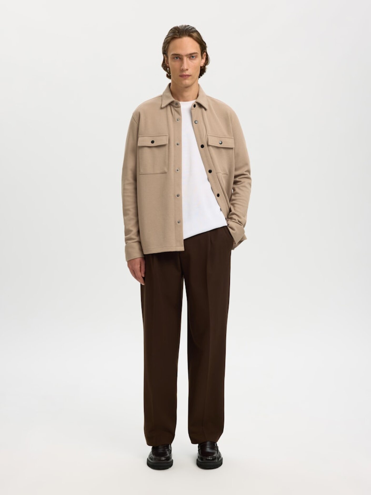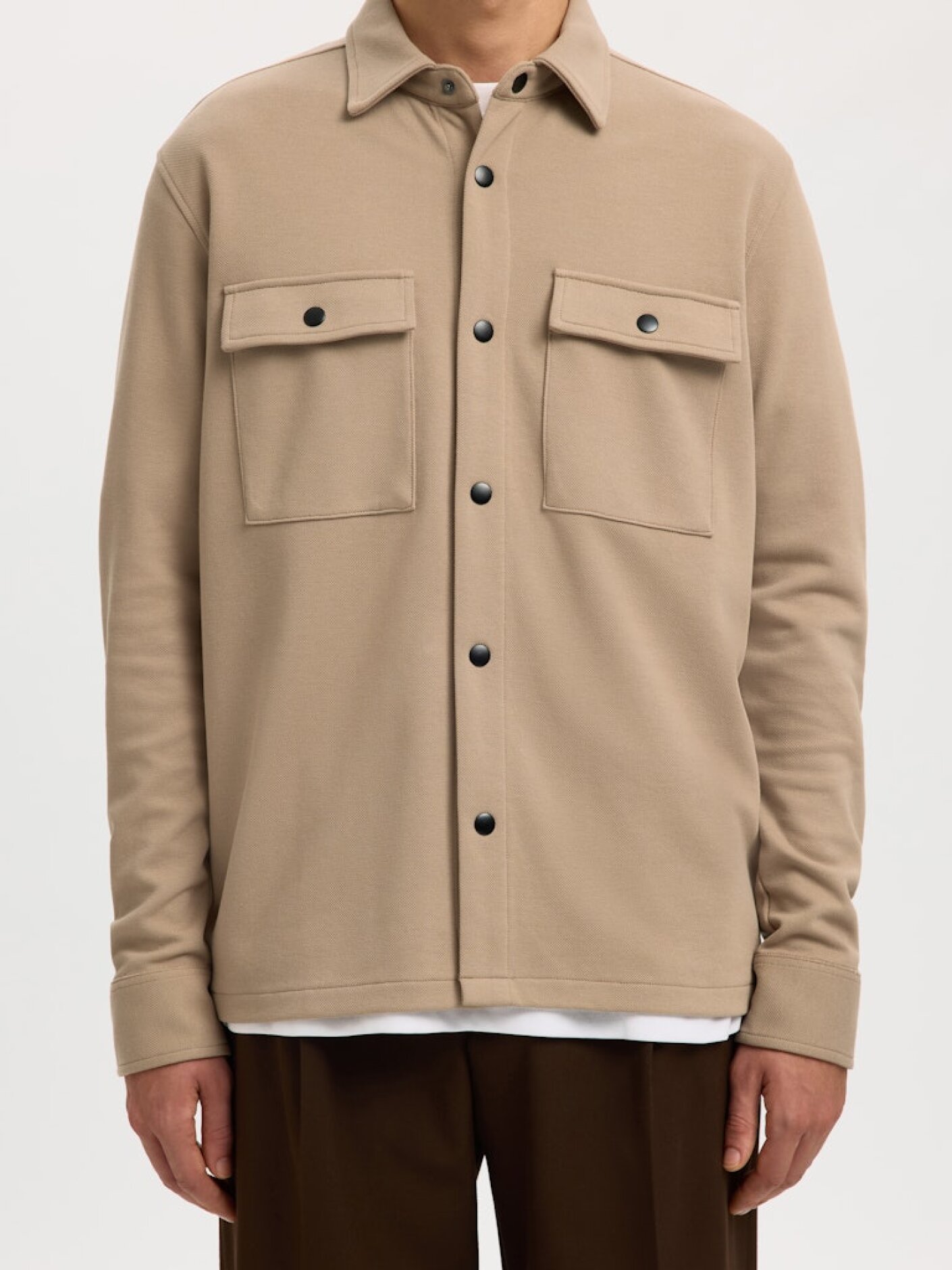 Selected Homme overshirt i en blød og behagelig sweatshirtkvalitet, der kombinerer et afslappet look med et mere struktureret skjorteudtryk. Den rene sandfarve giver et roligt og tidløst præg, mens de sorte knapper og de to brystlommer tilfører et moderne og funktionelt udtryk. En alsidig model, der fungerer både som let jakke og som et lag over T-shirts.Den regular fit pasform gør overshirten komfortabel gennem dagen og giver god bevægelsesfrihed. Den er velegnet til hverdagsbrug, når du ønsker et lag, der giver både varme og et velklædt, men ubesværet udtryk.