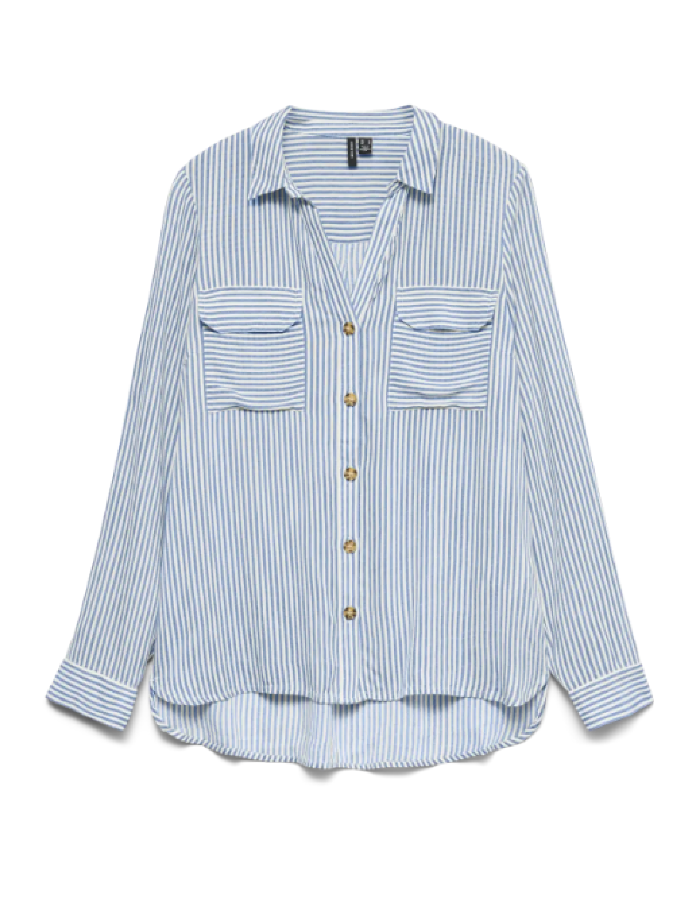Stribet skjorte i en let og blød viskosekvalitet med et klassisk, afslappet udtryk. De fine blå og hvide striber giver skjorten et frisk look, som passer godt ind i en anvendelig hverdagsgarderobe.Skjorten har krave, lange ærmer med manchet og brystlommer, der giver et afslappet præg. Pasformen er regulær og let rummelig, hvilket gør den nem at bruge både lukket eller åben over en top.
