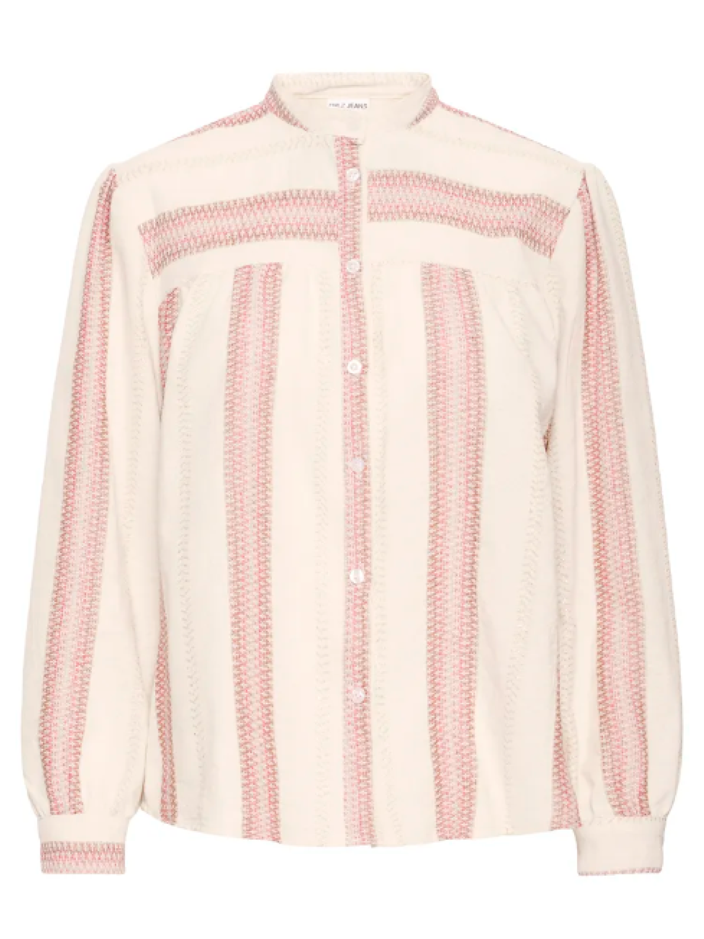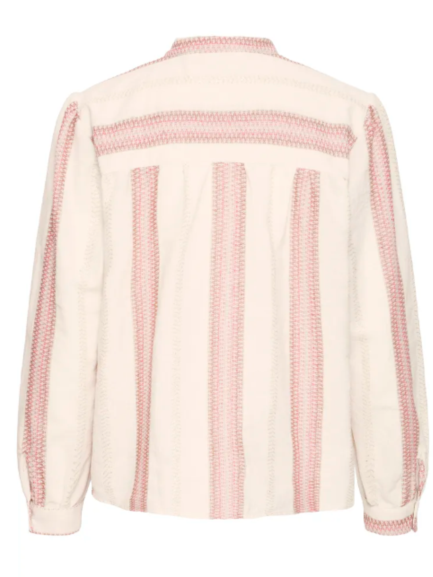 Denne feminine stribeskjorte fra Pulz har et let og bohemepræget udtryk i en lys cremefarve med fine rosa striber.Den luftige pasform gør skjorten behagelig hele dagen, mens de diskrete rynker skaber et blødt og feminint fald.