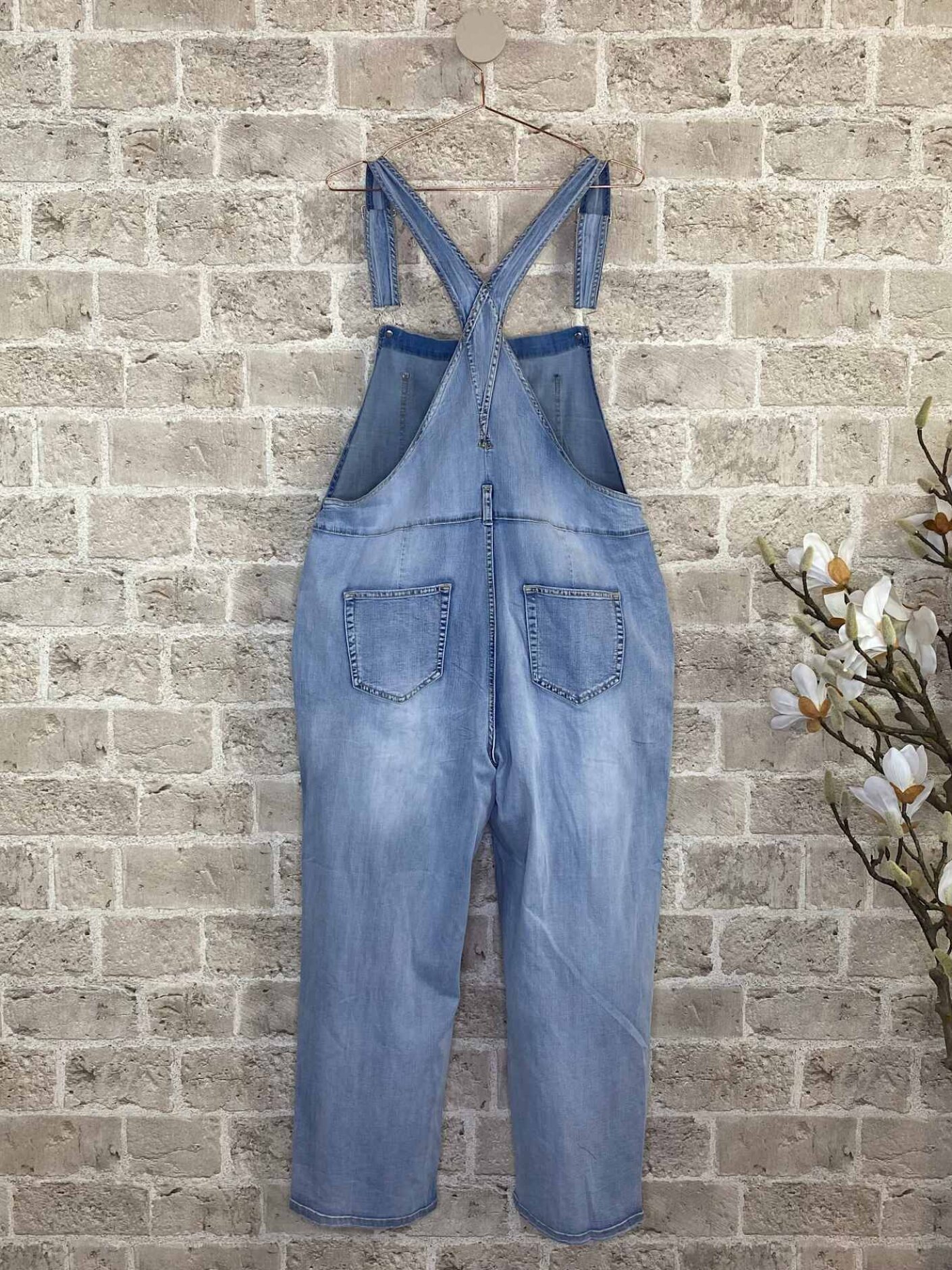 Denne denim buksedragt er en afslappet og anvendelig style med et klassisk udtryk. Den har justerbare seler, brystlomme og praktiske lommer både foran og bagpå, hvilket giver et funktionelt og tidløst look, der kan bruges sæson efter sæson.Kvaliteten har let stræk, som gør buksedragten behagelig at have på og nem at bevæge sig i. Den kan styles med en enkel T-shirt eller strik under og fungerer lige så godt til hverdag som til mere afslappede weekender.