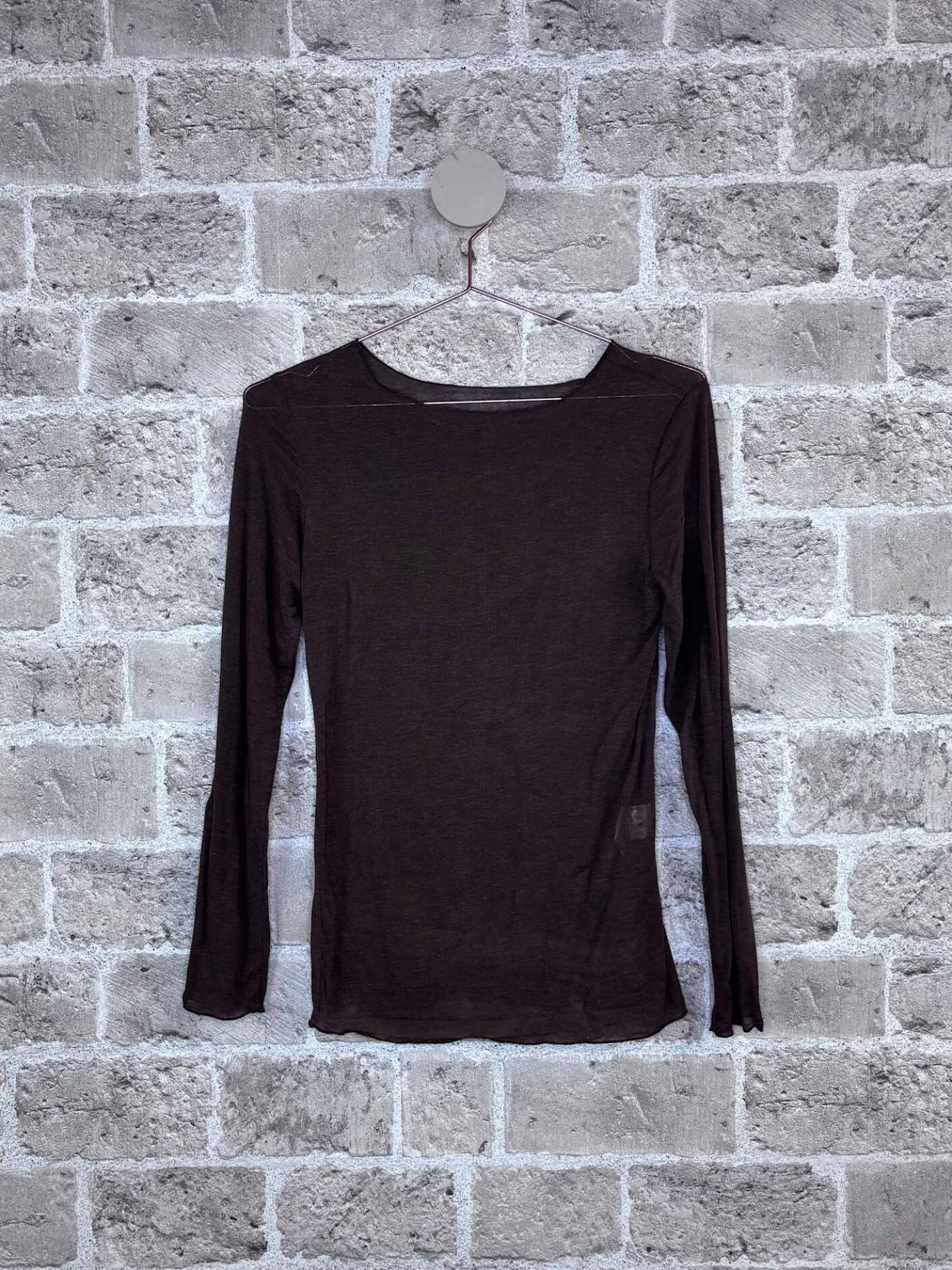 Let onesize bluse i en mørk, varm nuance med et enkelt og tidløst udtryk. Den fine og bløde kvalitet giver et let fald og føles behagelig mod huden, hvilket gør blusen velegnet til både hverdag og mere rolige anledninger.Materialeblandingen med cashmere tilfører ekstra blødhed, mens elastan sikrer smidighed og komfort. Blusen har lange ærmer og en klassisk rund hals og fungerer fint både alene og som et lag under strik, vest eller blazer.