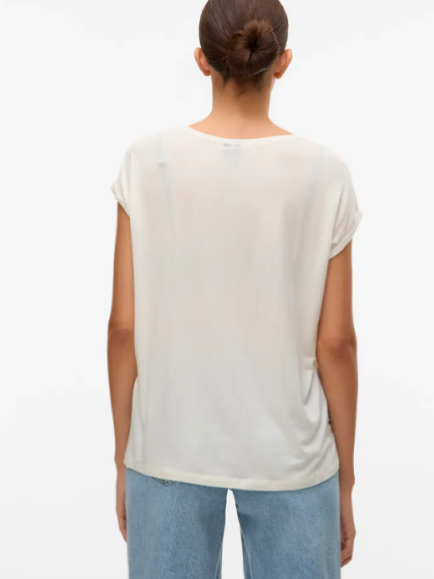 Denne klassiske T-shirt er et sikkert valg i garderoben og fungerer lige så godt til hverdag som til mere afslappede anledninger. Det enkle udtryk med rund hals og korte ærmer giver et tidløst look, der er nemt at style på tværs af sæsoner.Materialet falder blødt og let mod kroppen og føles behageligt hele dagen. Pasformen er afslappet uden at blive løs, hvilket gør T-shirten oplagt til jeans, løse bukser eller under en blazer for et mere afdæmpet udtryk.
