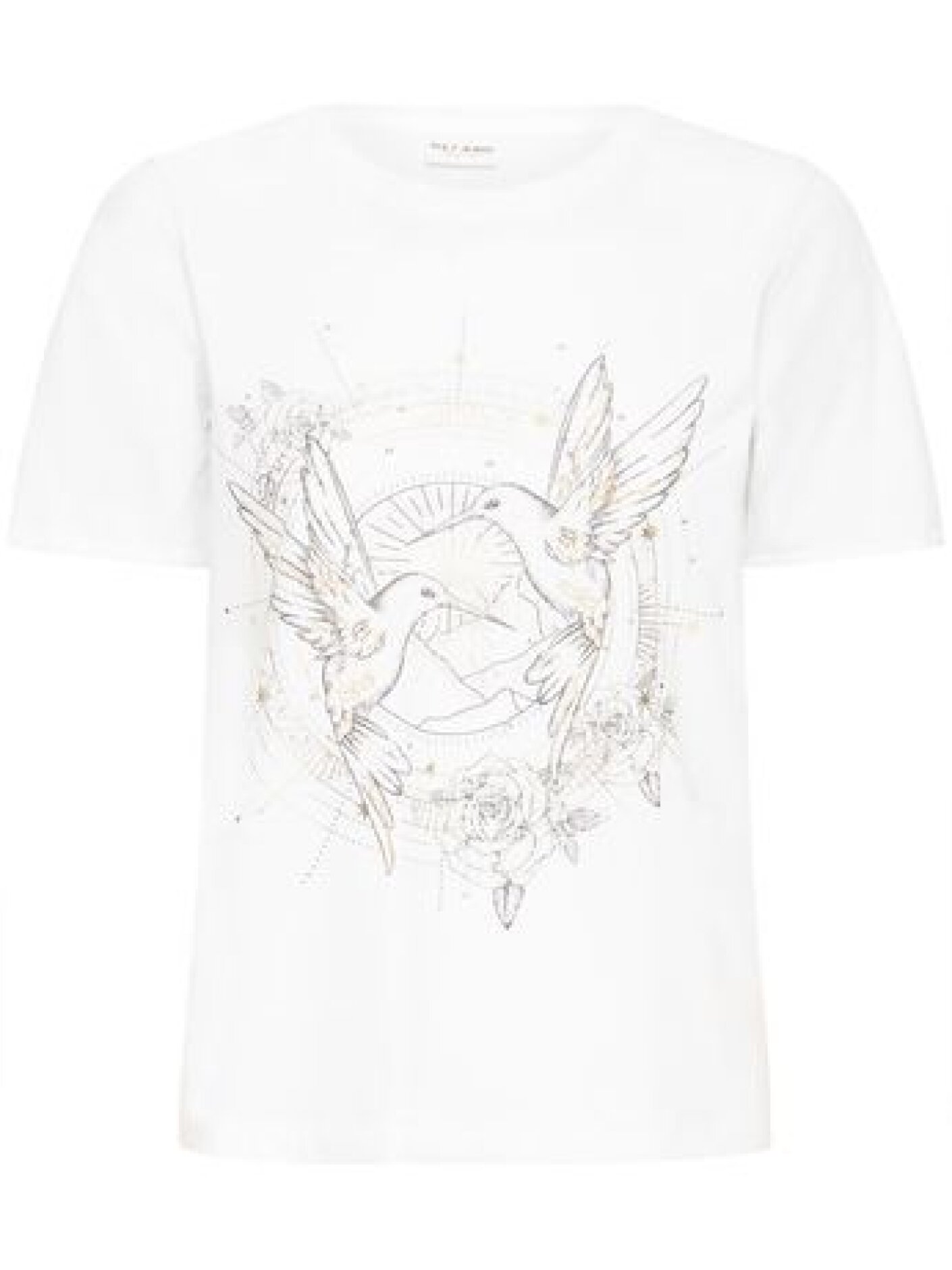 PZADABELLE TSHIRT er en klassisk T-shirt med et feminint og grafisk print, der giver et roligt, men karakterfuldt udtryk. Det detaljerede motiv på fronten tilfører et kunstnerisk præg, mens den ensfarvede ryg holder looket afbalanceret.T-shirten er strikket i en blød bomuldskvalitet og har en regulær pasform, som er nem at bruge i hverdagen. Den fungerer fint alene til jeans eller under en blazer, når udtrykket gerne må være afslappet, men velovervejet.