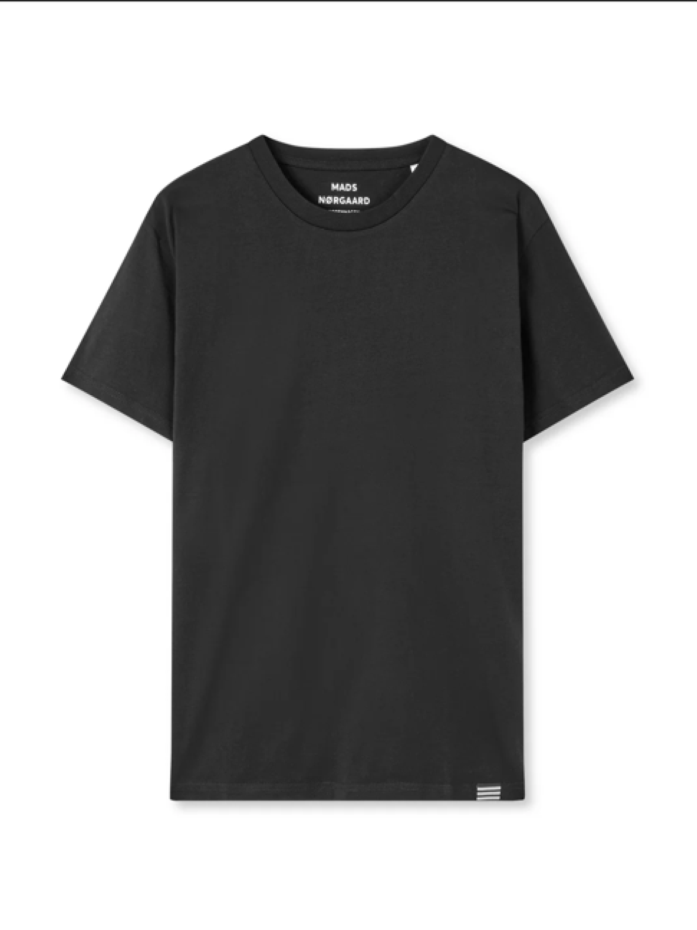 Mads Nørgaard Fine Jersey Thor Tee er en klassisk t-shirt i en let og blød kvalitet, der føles behagelig mod huden. Den sorte farve giver et skarpt og tidløst udtryk, som fungerer i enhver garderobe.Pasformen er regular og lige op og ned med en let kropsnær silhuet, rund hals og korte ærmer. En enkel basis-t-shirt, der kan bruges alene eller som et diskret lag under skjorte, strik eller jakke.