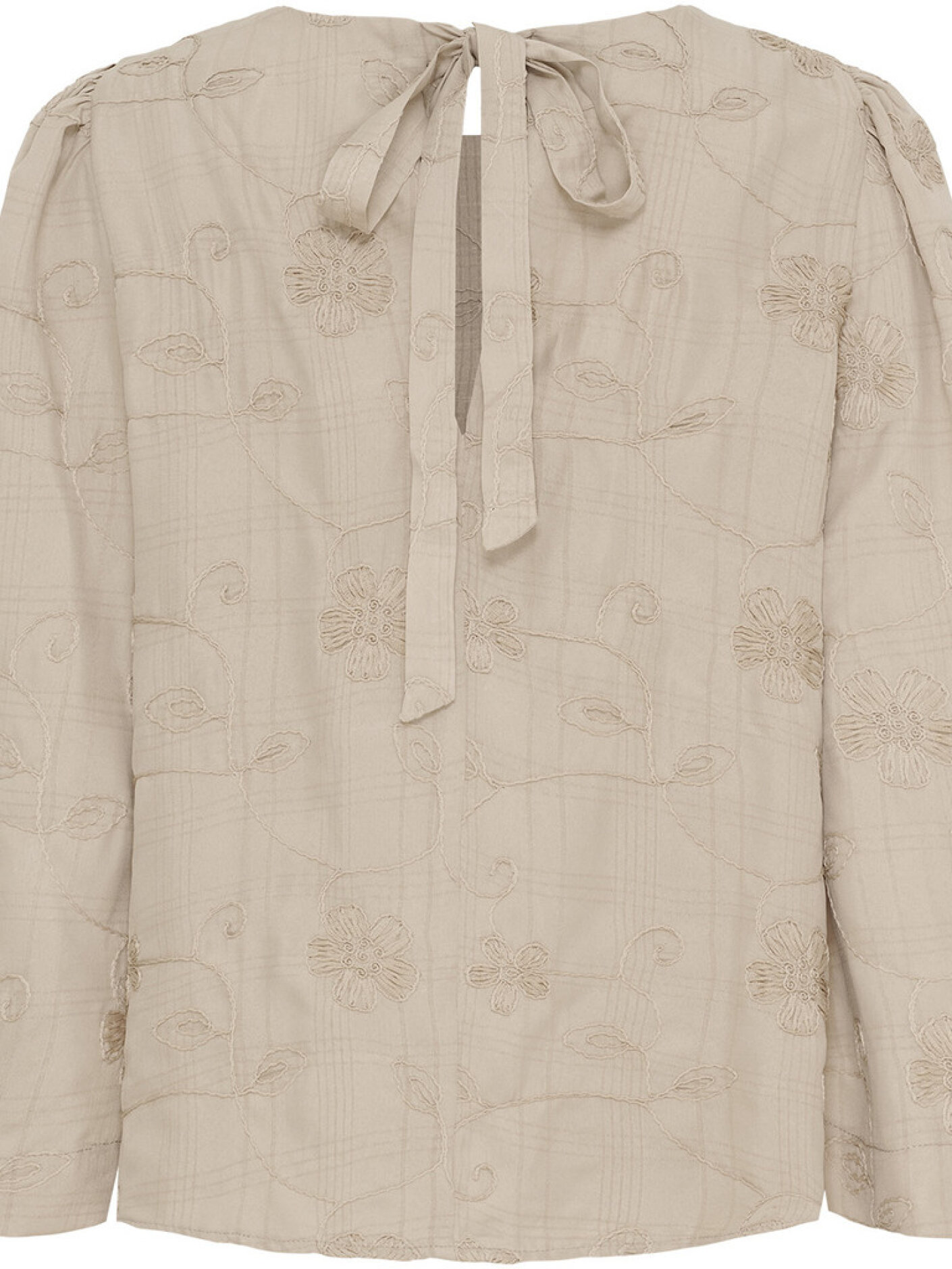 Juna Blouse er en feminin og elegant bluse med rund hals og fin bindedetalje i nakken, som giver et let og gennemført udtryk. De broderede mønstre tilfører dybde og et eksklusivt præg, mens kvaliteten føles luftig og behagelig på kroppen.Blusen har lange ærmer med let volume, der skaber en smuk silhuet uden at blive tung. Den fungerer lige godt til arbejdet med klassiske bukser som til aftener ude med nederdel og hæle, når du ønsker et roligt, sofistikeret look.