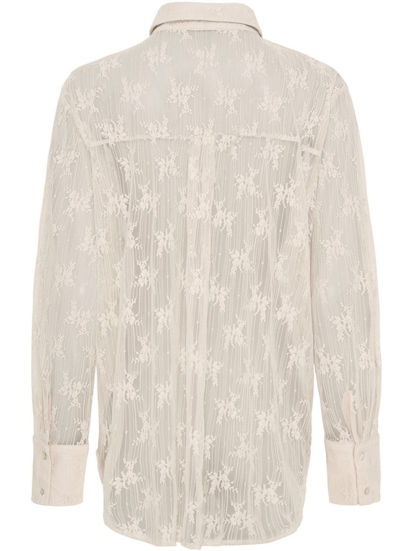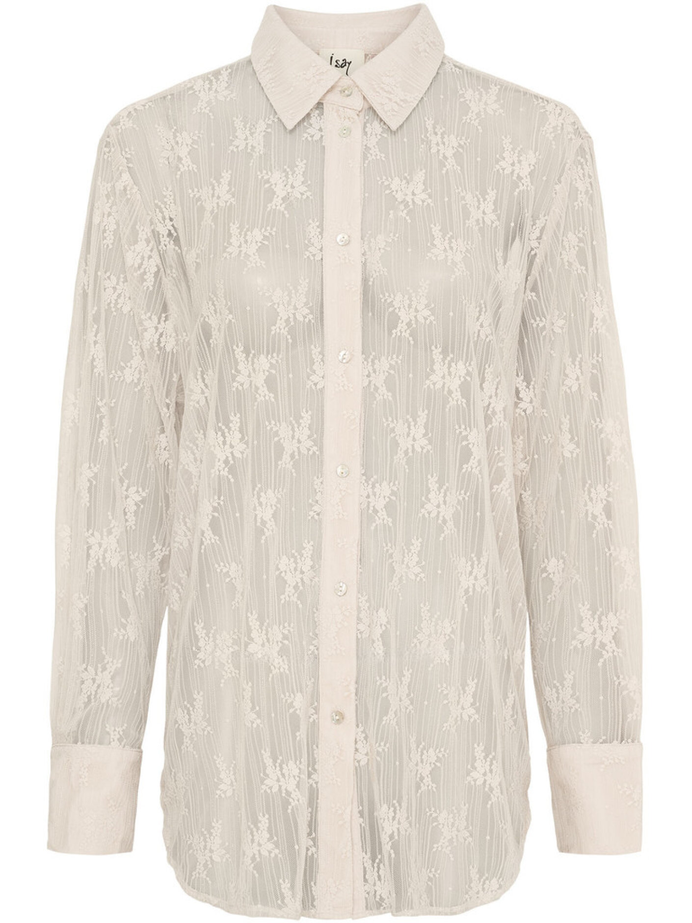 i say Laika Lace Shirt er en let og transparent skjorte i smuk, blomstret blonde, der giver et feminint og elegant udtryk. Den klassiske skjortekrave og den gennemgående knaplukning tilfører struktur, så looket stadig føles enkelt og velklædt.Kvaliteten er blød og elastisk, så skjorten er behagelig at have på og nem at style i lag. Brug den med en top under til hverdag, eller sæt den sammen med pæne bukser, når du vil have et mere festligt udtryk uden at det bliver tungt.