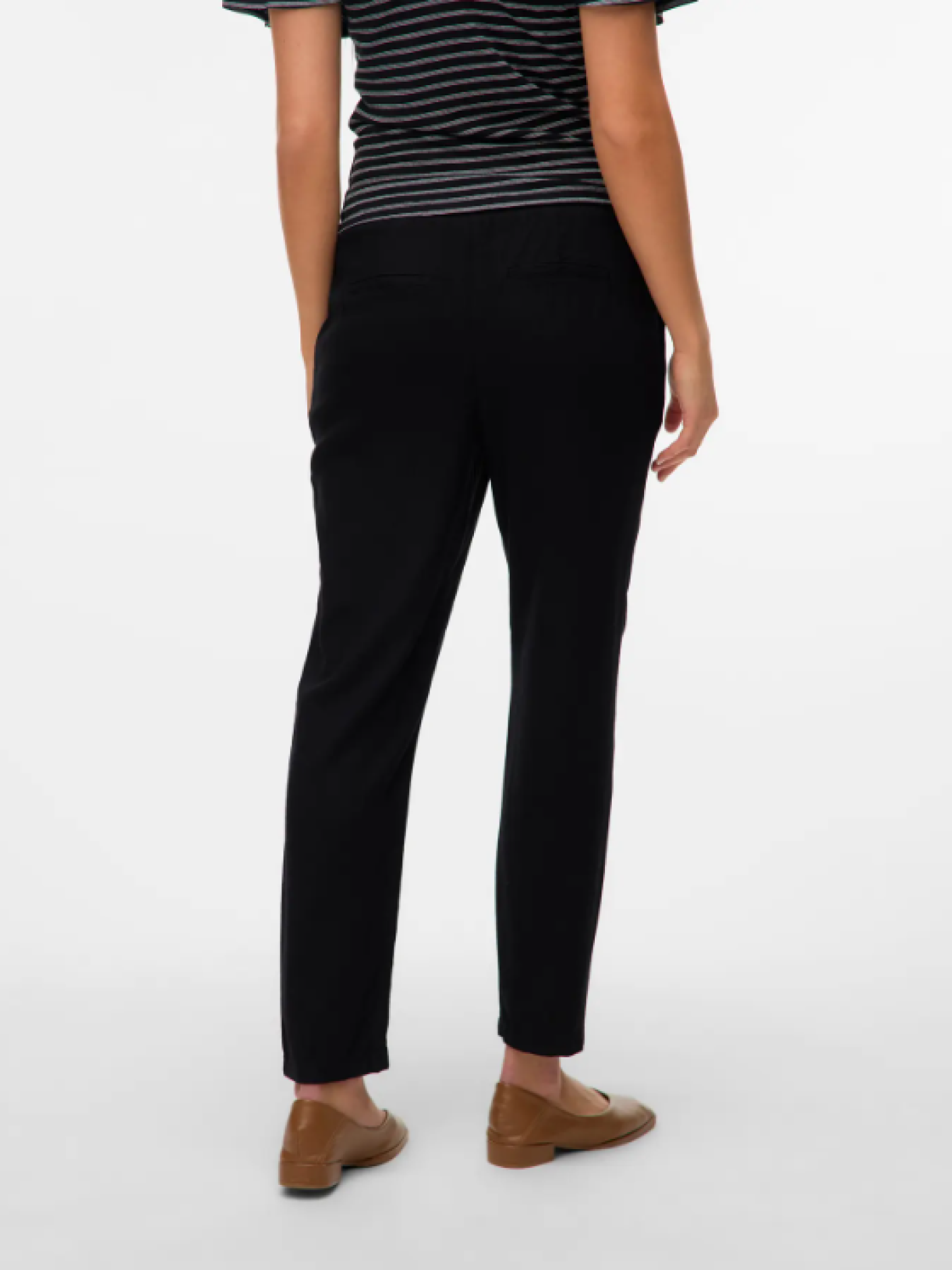 Disse sorte bukser er et sikkert valg til hverdagen, når du ønsker et enkelt og velklædt udtryk. Det rene snit og den rolige silhuet gør dem lette at bruge på tværs af anledninger, uanset om de styles afslappet eller mere ordentligt.Bukserne har elastik og bindebånd i taljen, som giver en behagelig pasform og god bevægelsesfrihed. Den ankellange længde fungerer fint både med sneakers, loafers eller sandaler og gør bukserne nemme at indpasse i en eksisterende garderobe.