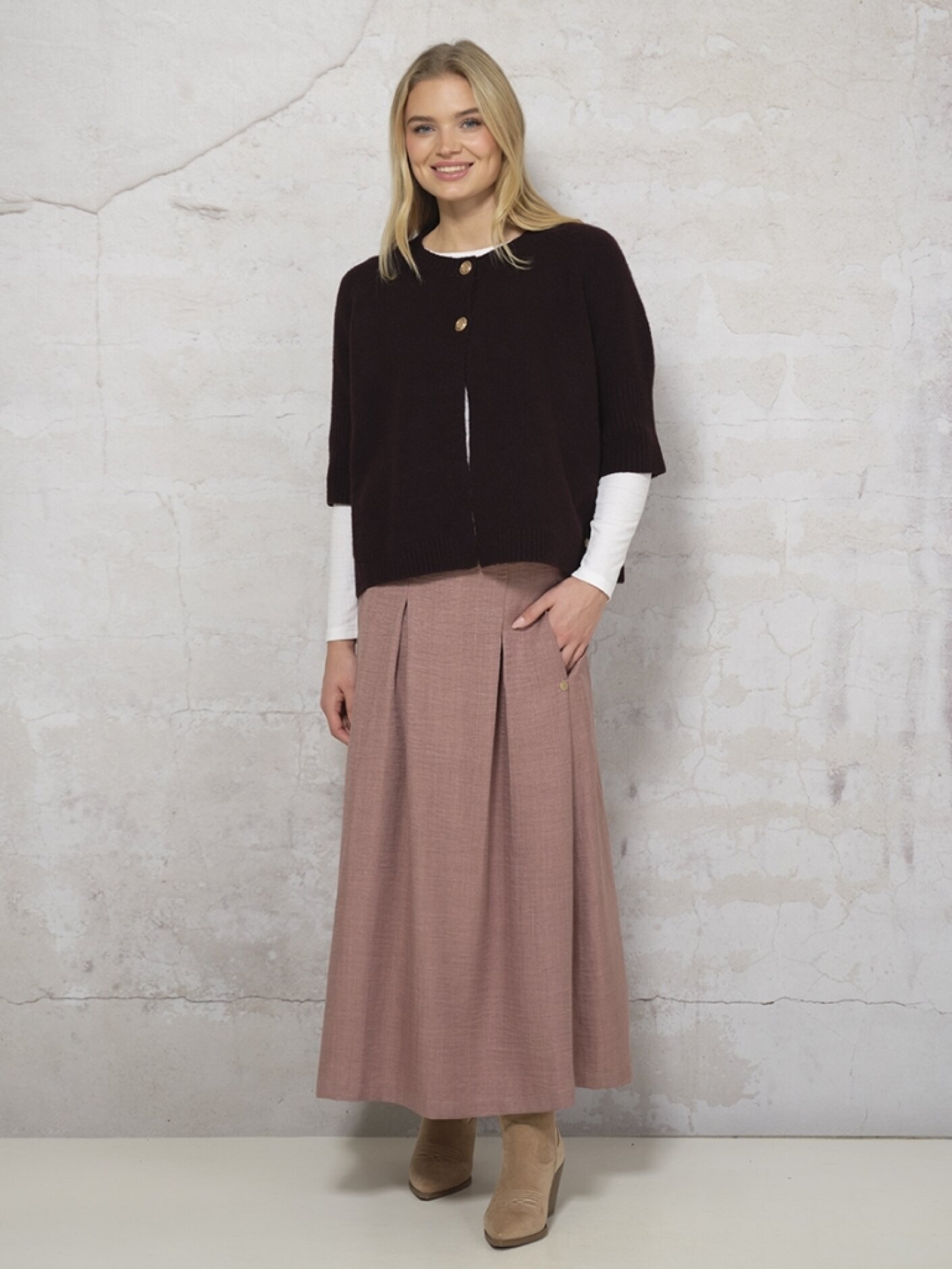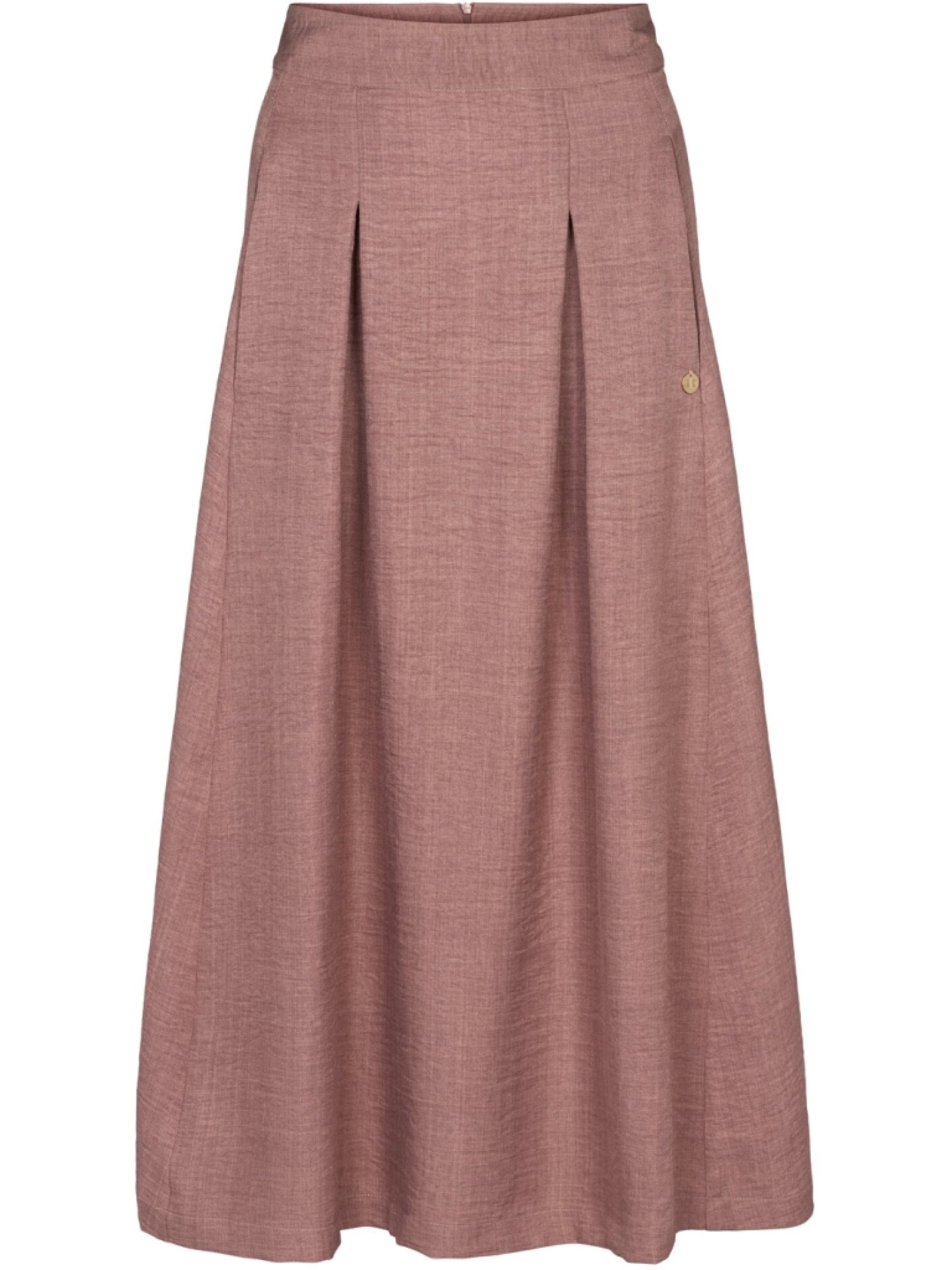 Pauline Skirt er en elegant og tidløs nederdel med et smukt, let struktureret stof, der giver et naturligt og eksklusivt fald. Den midi-lange model har en let A-formet silhuet, som skaber en feminin og harmonisk linje.Fine læg foran tilfører bevægelse og karakter, mens den faste linning giver en pæn pasform i taljen. Nederdelen er designet med sidelommer, diskret lynlås bagpå og en lille metaldetalje i siden, som fuldender det enkle og velafbalancerede udtryk.