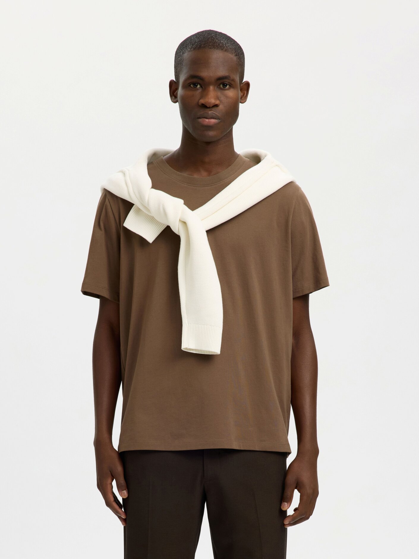 Selected T-shirt er en tidløs og alsidig basisstyle, der passer naturligt ind i enhver garderobe. Den rene O-hals og den rolige brune nuance giver et enkelt og stilrent udtryk, som gør T-shirten nem at kombinere med både jeans, chinos eller shorts.T-shirten er fremstillet i en blød bomuldskvalitet, der føles behagelig mod huden og giver god komfort i hverdagen. Den klassiske regular fit pasform og de korte ærmer skaber et afslappet look, som fungerer både alene eller under en skjorte eller let strik.