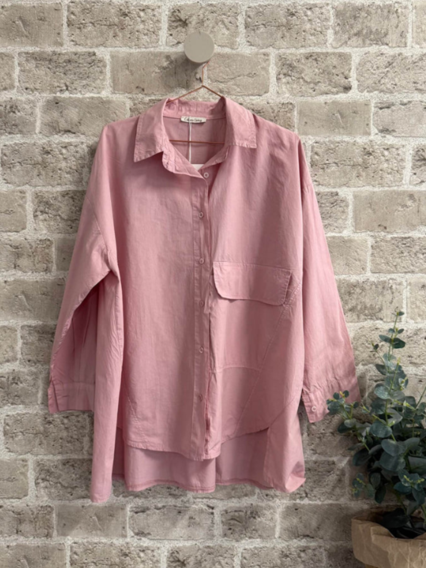 Denne skjorte i en blød rosa nuance har et afslappet og feminint udtryk, der passer godt ind i en moderne garderobe. Den rene bomuldskvalitet føles let og behagelig mod huden, hvilket gør skjorten ideel til både hverdagsbrug og rolige dage, hvor komfort og stil går hånd i hånd.Den rummelige onesize pasform giver et flot, løst fald og gør modellen nem at style til både jeans, bukser eller over en kjole. Den klassiske krave og den store brystlomme tilfører et enkelt, afslappet look, mens den længere bagkant giver et elegant og naturligt fald.