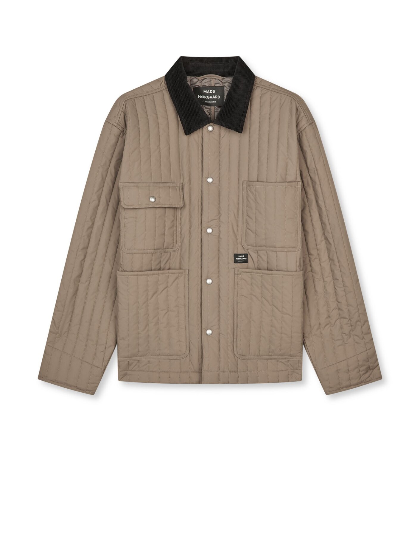 Quilt Chore Jacket er en let og boxy skjortejakke med et afslappet udtryk og et grafisk stribet mønster. Kombinationen af horisontale og vertikale linjer giver et levende, men stadig roligt look, der passer godt ind i en moderne garderobe.Skjortejakken er designet med klassisk krave og en rummelig pasform, der gør den velegnet som et let lag over en T-shirt eller strik. Den fungerer godt både indendørs og som overgangsjakke i mildere vejr.