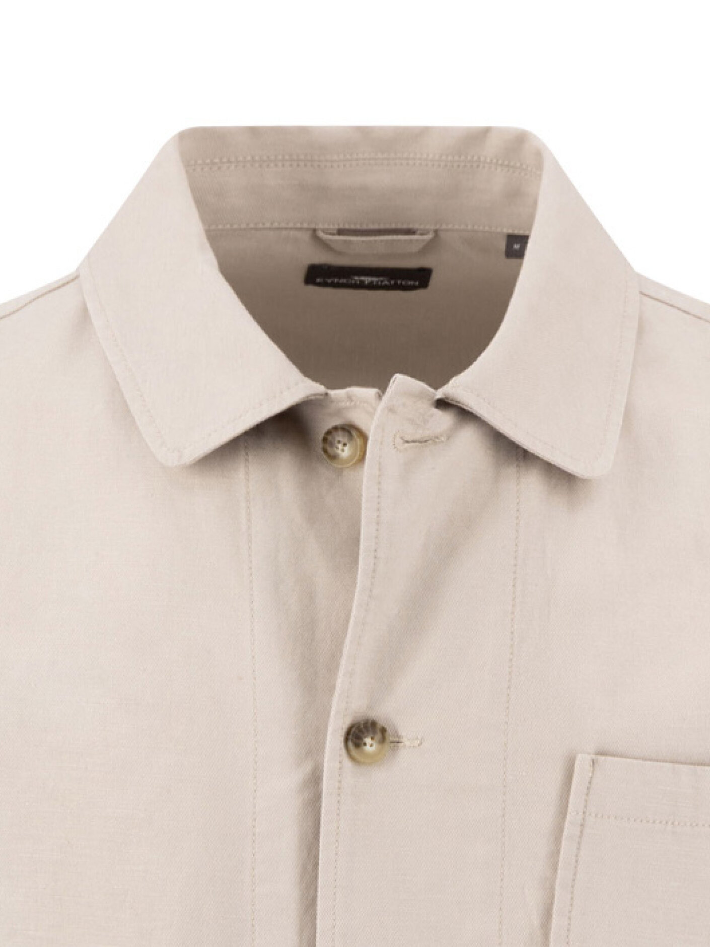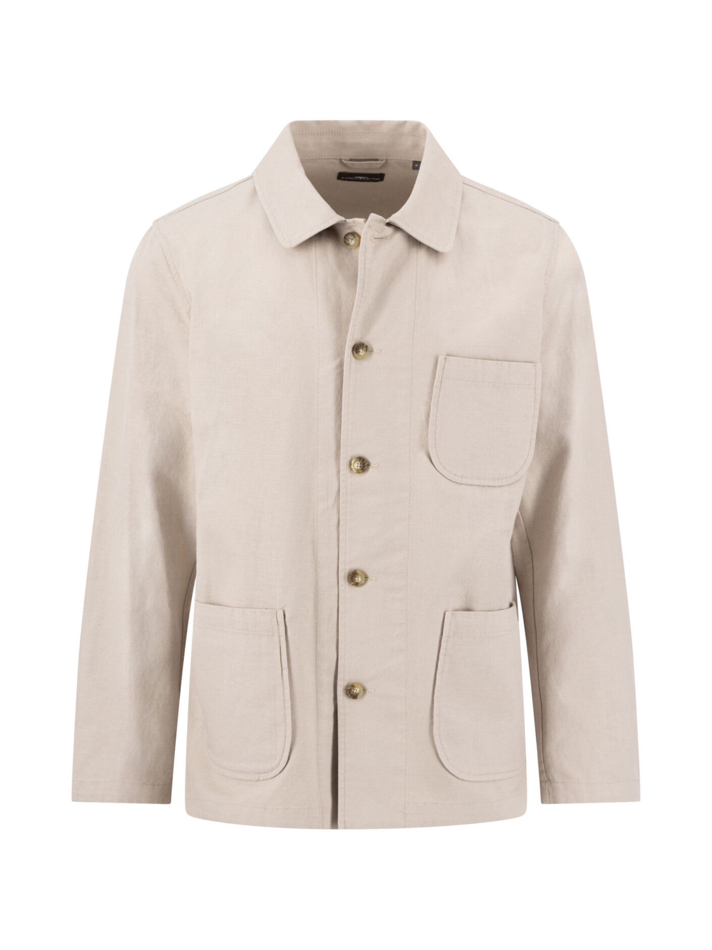 Casual jakke i en lys stone farve med et enkelt og afslappet udtryk. Den rene front med knaplukning og klassisk krave giver et tidløst look, der fungerer godt både til hverdag og pænere brug i de varmere måneder.Jakken er fremstillet i en let bomulds- og hørblanding med en smule stretch, som gør den behagelig at have på dagen igennem. De praktiske lommer og den afslappede pasform giver et uformelt udtryk, der er nemt at style over en skjorte eller T-shirt.