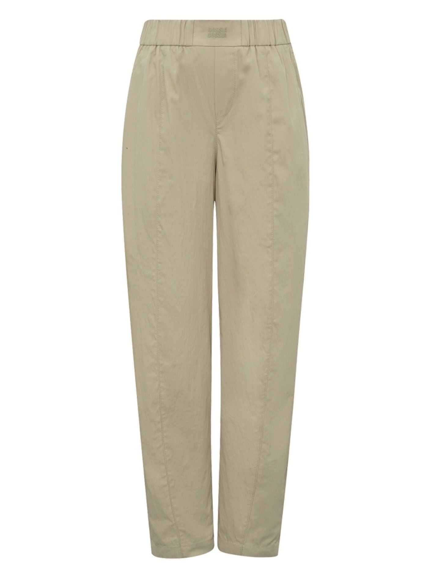 BOSSWIK bukser i en let og behagelig kvalitet, der gør dem ideelle til hverdagsbrug. Den enkle stil og den rolige farvetone giver et afslappet, men velklædt udtryk, som let kan styles med både skjorter, strik eller en let top.Bukserne har elastik i taljen, som giver en fleksibel og komfortabel pasform gennem hele dagen. De praktiske sidelommer og en enkelt baglomme tilfører funktionelle detaljer, mens den let tilspidsede benafslutning giver et moderne og afbalanceret look.