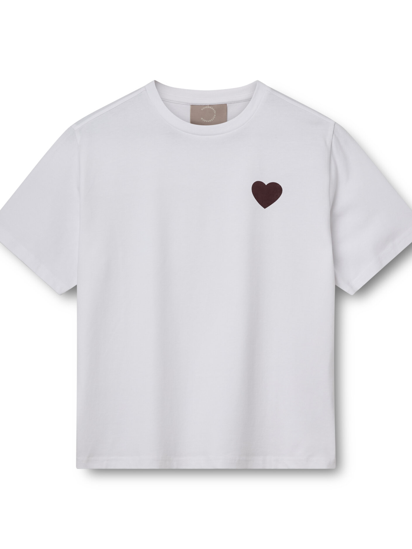 Kopenhaken T-shirt i Bright White er en enkel og alsidig basisstyle, der passer ind i enhver garderobe. Den rene hvide farve kombineret med det diskrete hjerte på brystet giver et roligt og moderne udtryk, som fungerer både til hverdag og afslappede anledninger.Kvaliteten føles blød og behagelig mod huden, og det lette stræk giver god bevægelsesfrihed. Brug den alene til jeans eller under en skjorte for et afslappet lag-på-lag look. En sikker favorit, du kan vende tilbage til igen og igen.