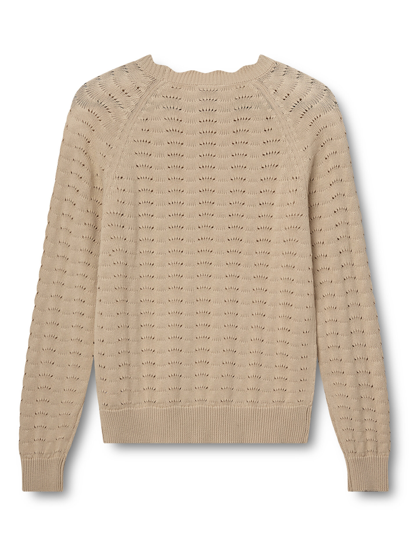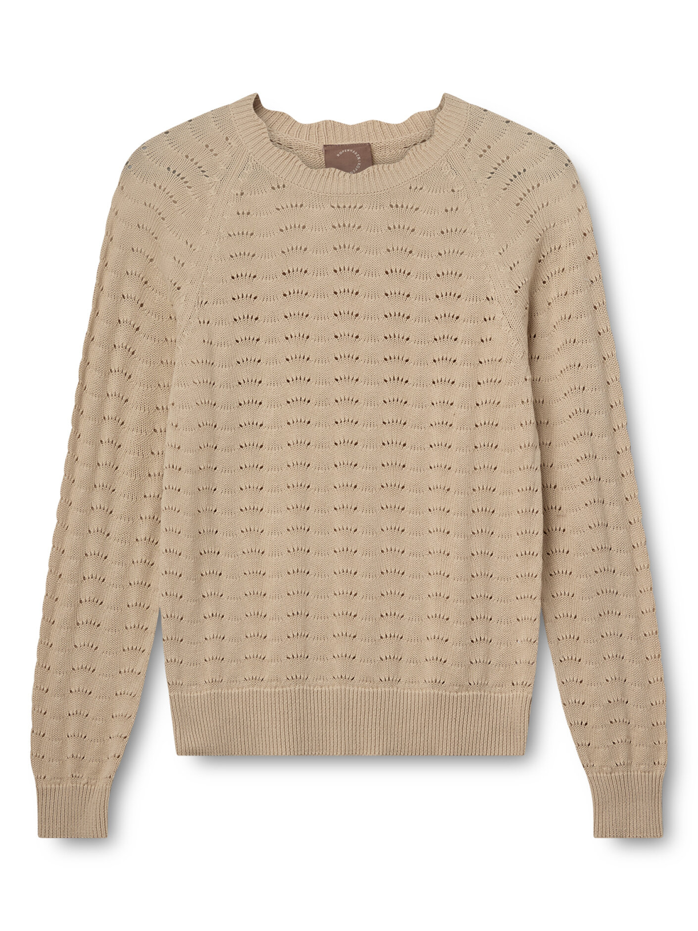 Kopenhaken strik i Savannah Tan er en let og feminin style med et roligt udtryk. Det fine hulmønster giver strikken et elegant spil og gør den velegnet til både hverdag og lidt pænere brug, hvor du ønsker et afslappet men gennemført look.Kvaliteten i ren bomuld føles behagelig mod huden og gør den ideel til overgangssæsoner eller kølige sommeraftener. Den bløde, brune nuance er nem at kombinere med både lyse og mørke farver og giver et varmt, naturligt udtryk.