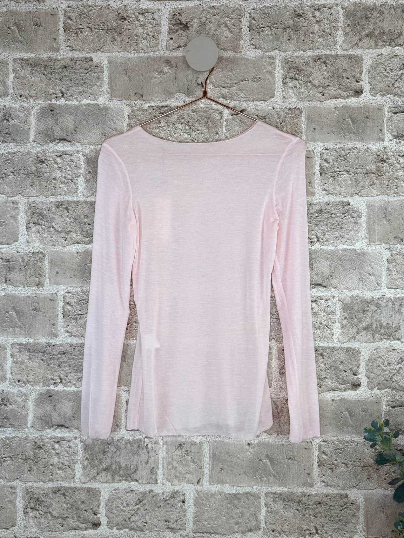 Denne langærmede basis bluse er en enkel og alsidig style med et let og blødt udtryk. Den rosa nuance giver et feminint og roligt look, som tilfører et blødt farvespil til garderoben. Den tætsiddende, elastiske kvalitet smyger sig behageligt til kroppen.Kombinationen af viskose og en smule cashmere giver en ekstra blød fornemmelse mod huden. Den lette stretch sikrer god bevægelighed, og den enkle silhuet gør blusen oplagt både som inderlag og som en let og feminin hverdagsfavorit.