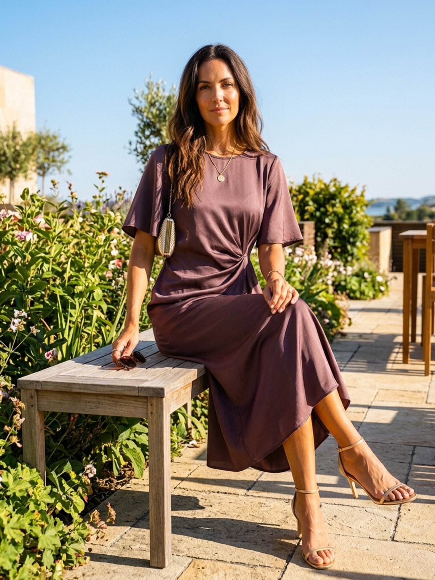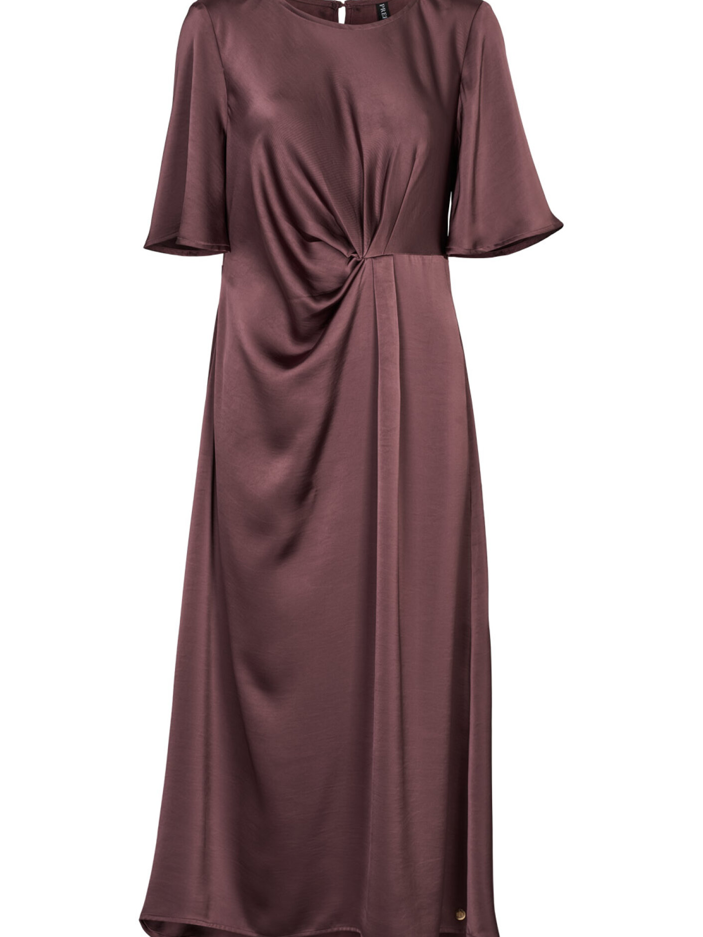 Nora Dress fra Prepair er en elegant kjole med et feminint udtryk og et smukt, blødt fald. Den runde halsudskæring og de korte, let løstsiddende ærmer giver et roligt og afbalanceret look, der fungerer både til hverdag og mere festlige anledninger.Kjolen er figursyet med dekorativ drapering i taljen, som fremhæver silhuetten på en naturlig måde. Den let A-formede pasform og længden til midt på læggen giver et let og behageligt fald, der bevæger sig flot med kroppen.