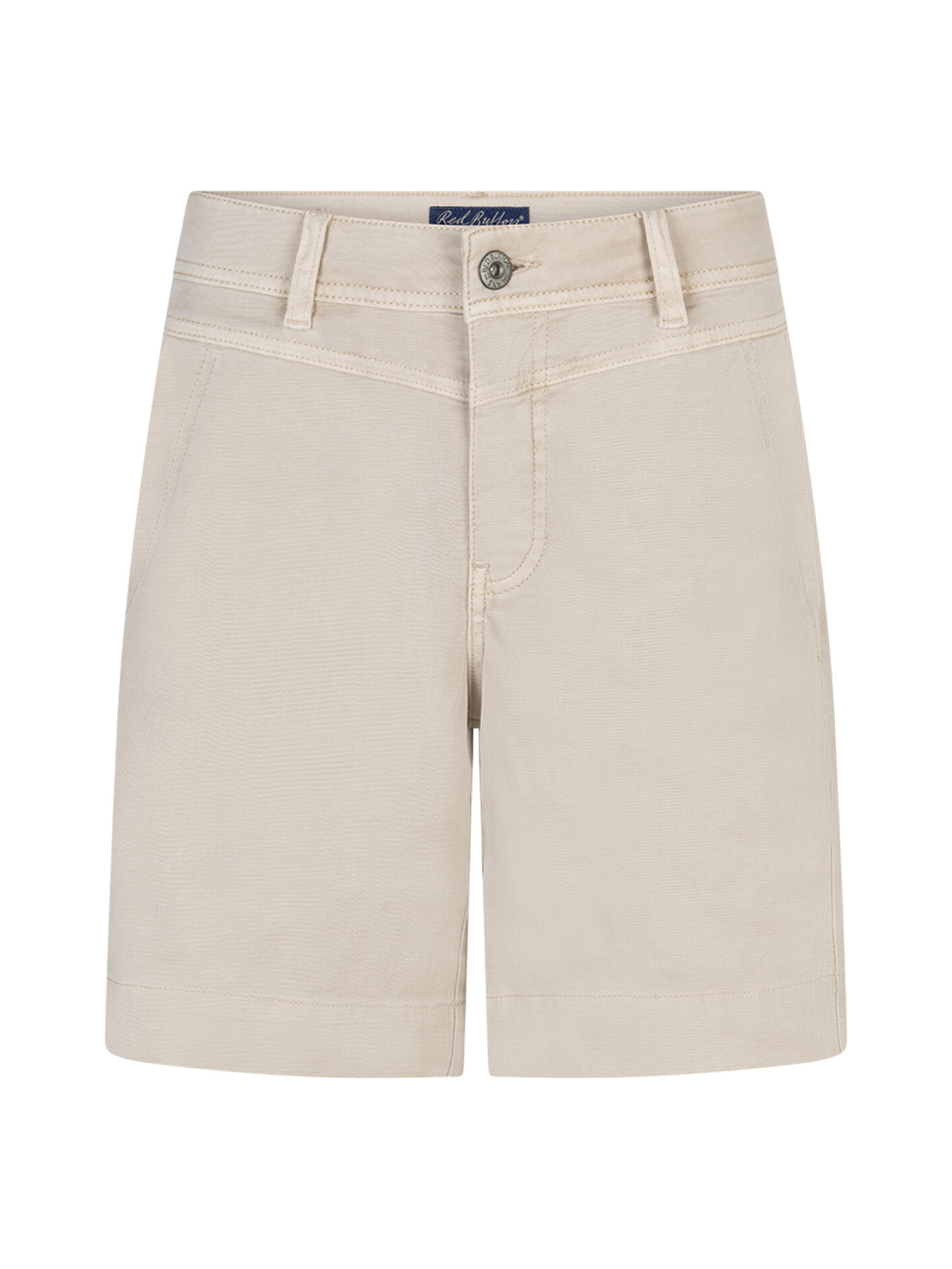 Red Button Sara Short Lyocell Twill i en lys sandfarvet nuance, der giver et rent og sommerligt udtryk. Den enkle stil gør dem lette at kombinere med både skjorter, T-shirts og let strik.Modellen har høj talje og en behagelig pasform, der sidder pænt uden at stramme. Den bløde kvalitet med lyocell giver en let og smidig fornemmelse, som gør shortsene oplagte til varme dage og afslappede anledninger.