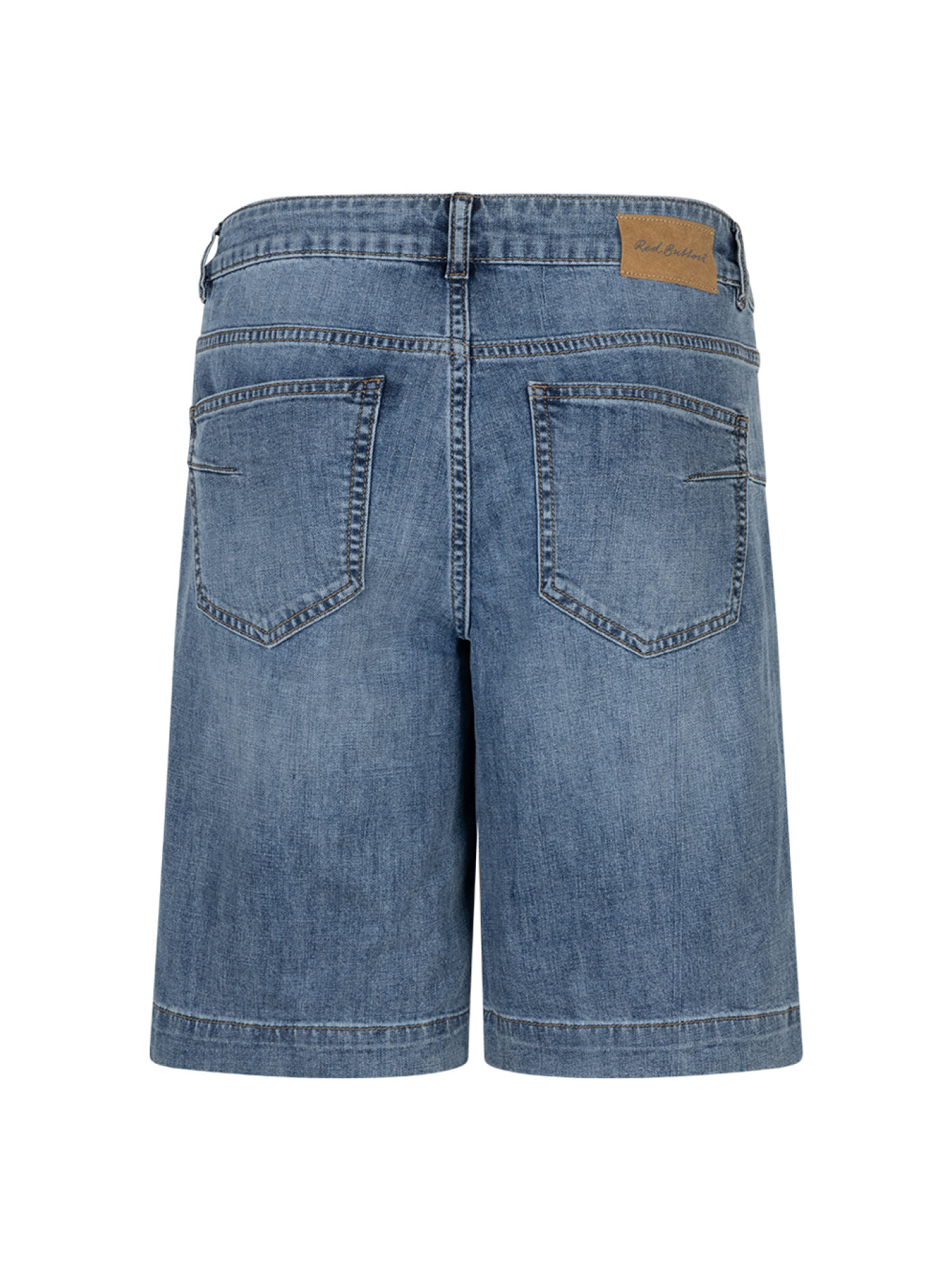 Red Button Kate Bermuda & Scarf i en klassisk blå denimvask, der giver et afslappet og sommerligt udtryk. Det medfølgende tørklæde i linningen tilfører et dekorativt element og skaber et personligt look.Shortsene har høj talje og en regulær pasform, som sidder pænt og komfortabelt. Denimkvaliteten giver et velkendt og slidstærkt udtryk, mens tørklædet kan bindes i livet eller nemt tages af og bruges som et klassisk tørklæde om halsen.