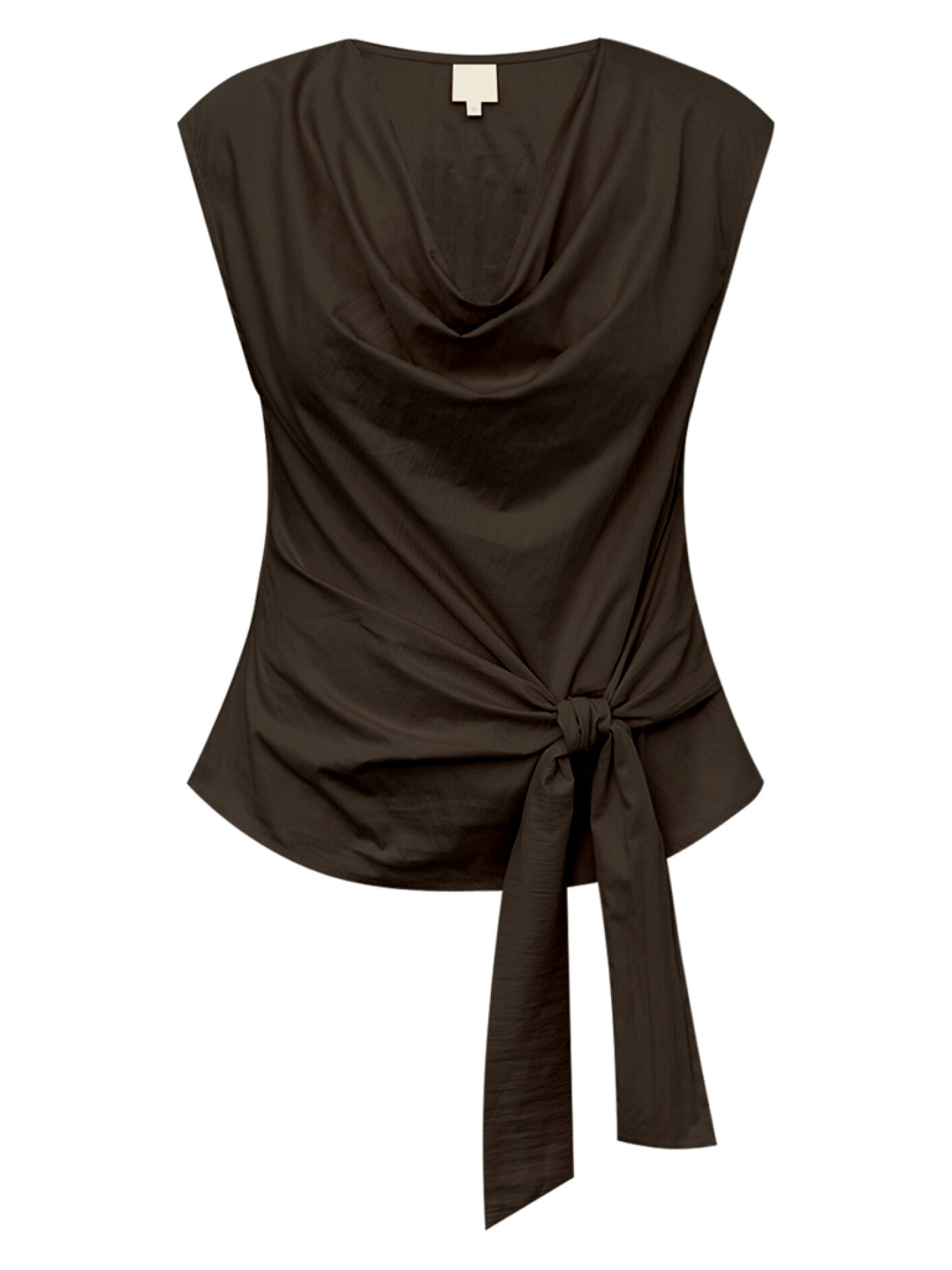 Gossia SagaraGO Blouse i en dyb brun nuance med et elegant, draperet udtryk. Den bløde fald i fronten skaber en feminin silhuet, mens bindebåndet i siden giver mulighed for at justere pasformen og tilfører et dekorativt element.Modellen føles let og behagelig at have på og egner sig både til hverdag og mere festlige anledninger. Style den med nederdel for et sofistikeret look eller med jeans for et afslappet, men stadig velklædt udtryk.