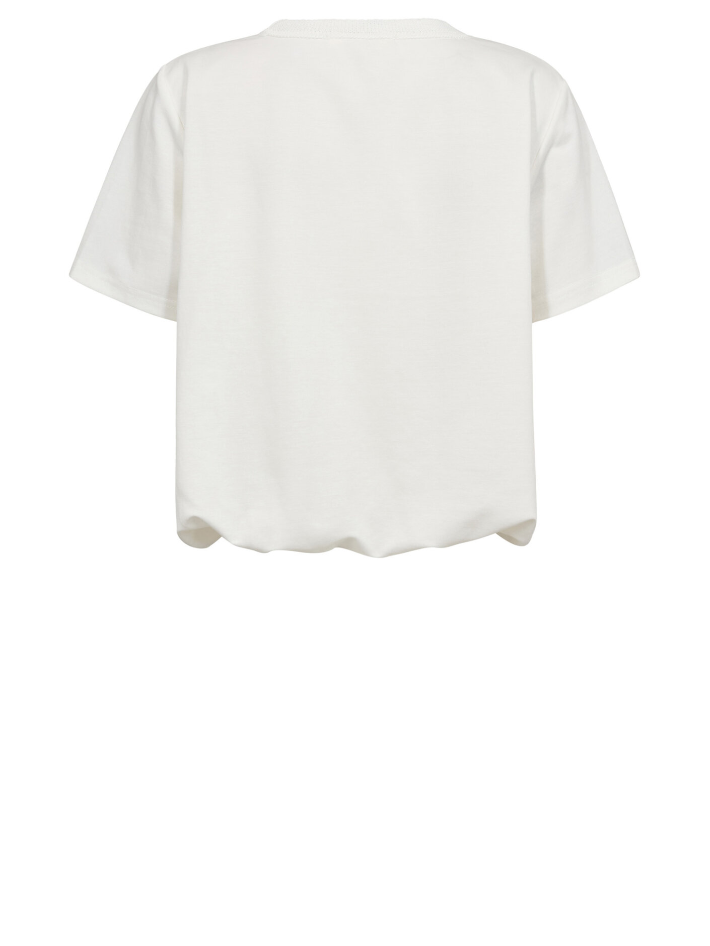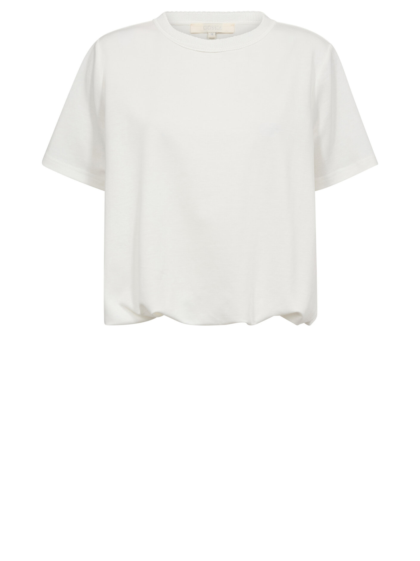 Gossia KarolineGO Tee i en blød off-white nuance, der giver et let og feminint udtryk. Modellen har et diskret ballonfald ved taljen, som skaber en flot silhuet og tilfører et elegant twist til den klassiske T-shirt.Kvaliteten føles behagelig mod huden og gør den velegnet til både hverdag og pænere brug. Style den med nederdel for et feminint look eller med jeans for et mere afslappet udtryk, der stadig fremstår gennemført.