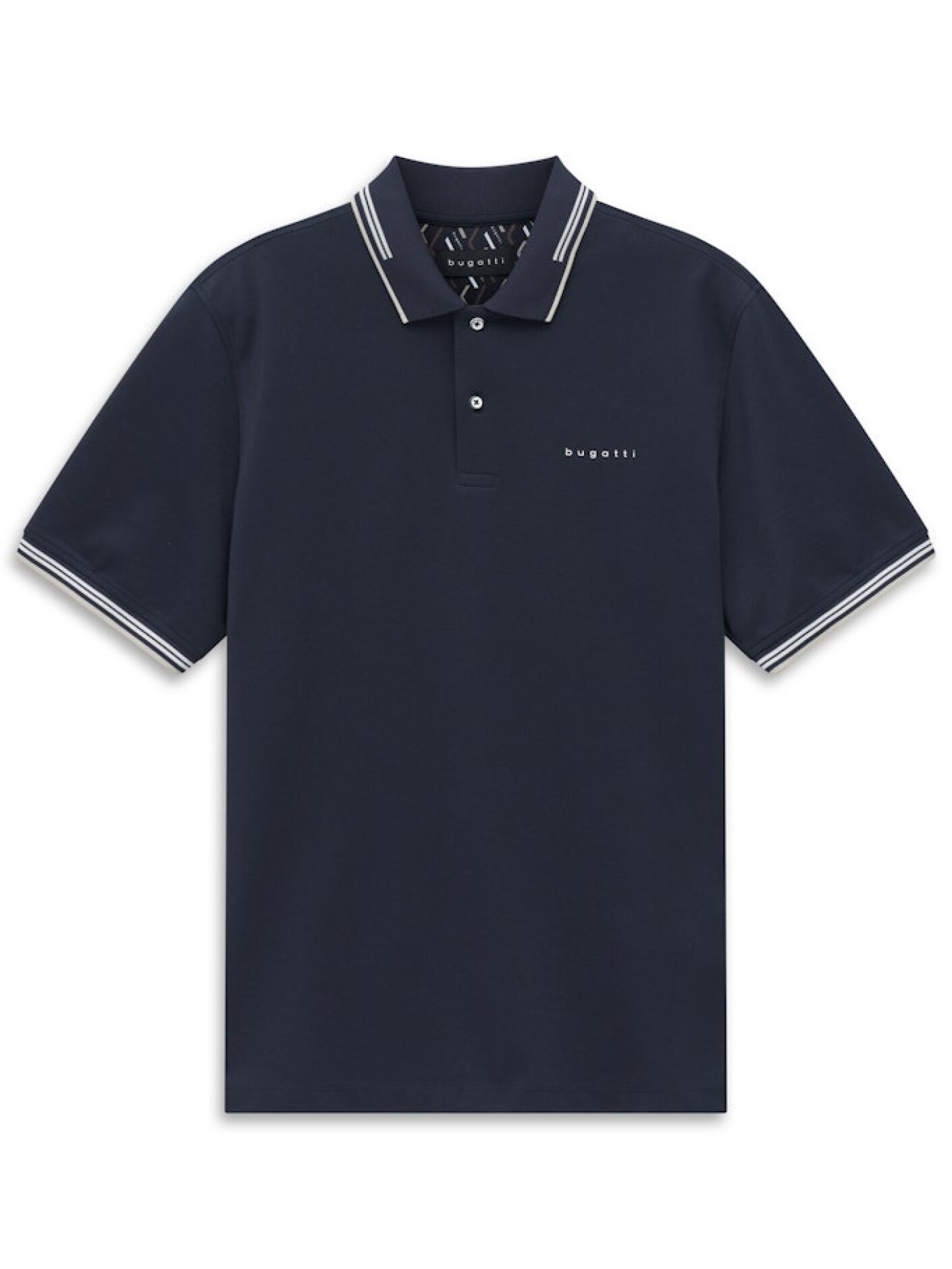 Bugatti polo shirt i en dyb mørkeblå nuance, der giver et roligt og klassisk udtryk. De fine kontraststriber ved krave og ærmekanter tilfører et diskret spil og understreger det gennemførte design.Den bløde bomuldskvalitet sikrer en behagelig komfort hele dagen, mens den enkle stil gør den nem at kombinere med både jeans og chinos. Et alsidigt valg til forårs- og sommersæsonen, hvor et afslappet men velklædt look ønskes.